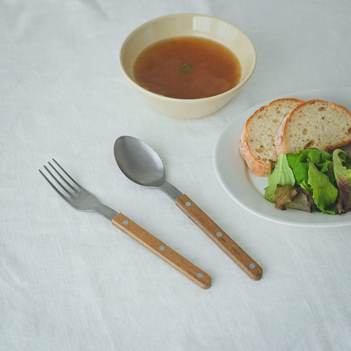 持ち手の部分にチークを用い、天然木の風合いを活かしたカトラリー。