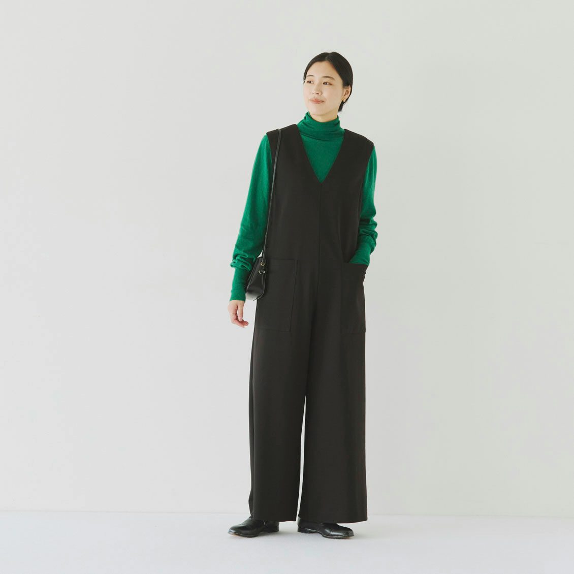 合わせるアイテムで雰囲気を変えられるのが、このオールインワンの着回しやすさの理由。