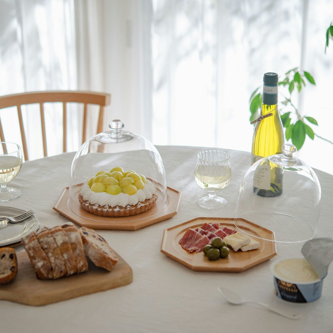 近所で買ってきたパンや焼き菓子をドームにとじこめたら、それだけでお部屋の一角がおしゃれなカフェのような雰囲気に。