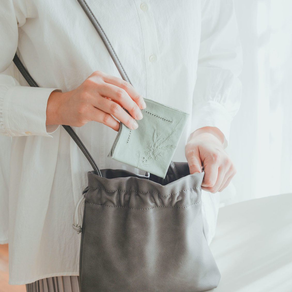 穏やかな薄めのグレーは、どんなバッグや服装にも合わせやすさ抜群。フォーマルな日だけでなく、日常でも使い勝手が良さそうです。