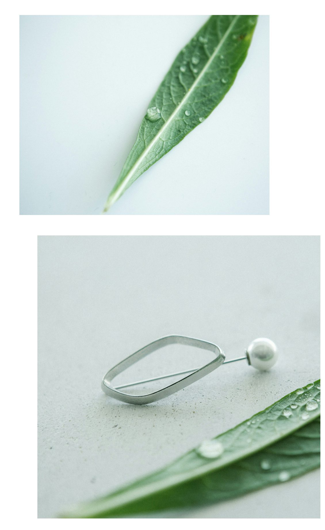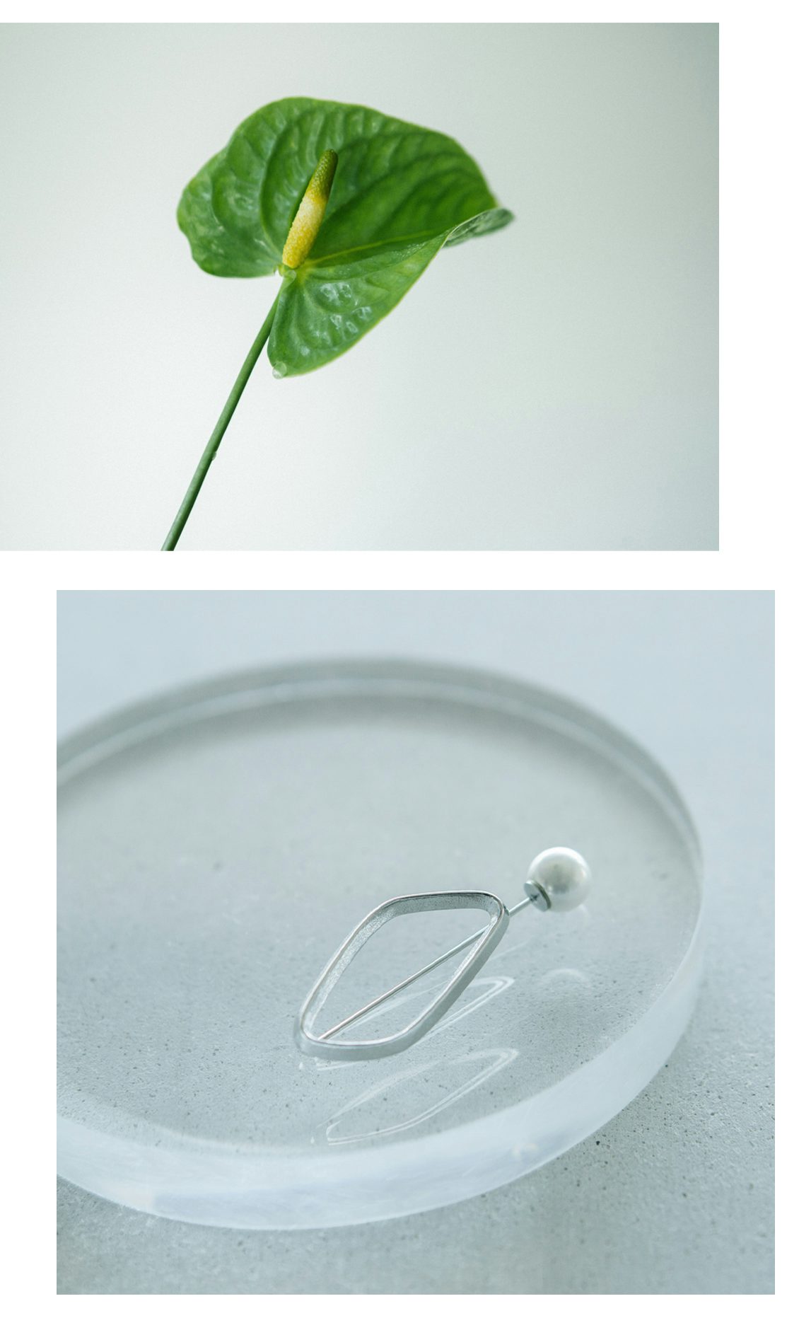 ピンのキャッチには、水滴に見立てた一粒のパールをあしらって、デザインの一部に。