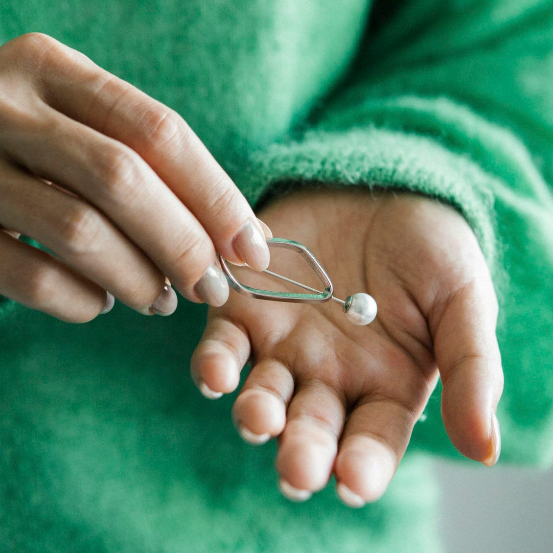 キャッチのパールがどちら側に向いても良いので、利き手や服のデザインにかかわらずつけやすいですよ。