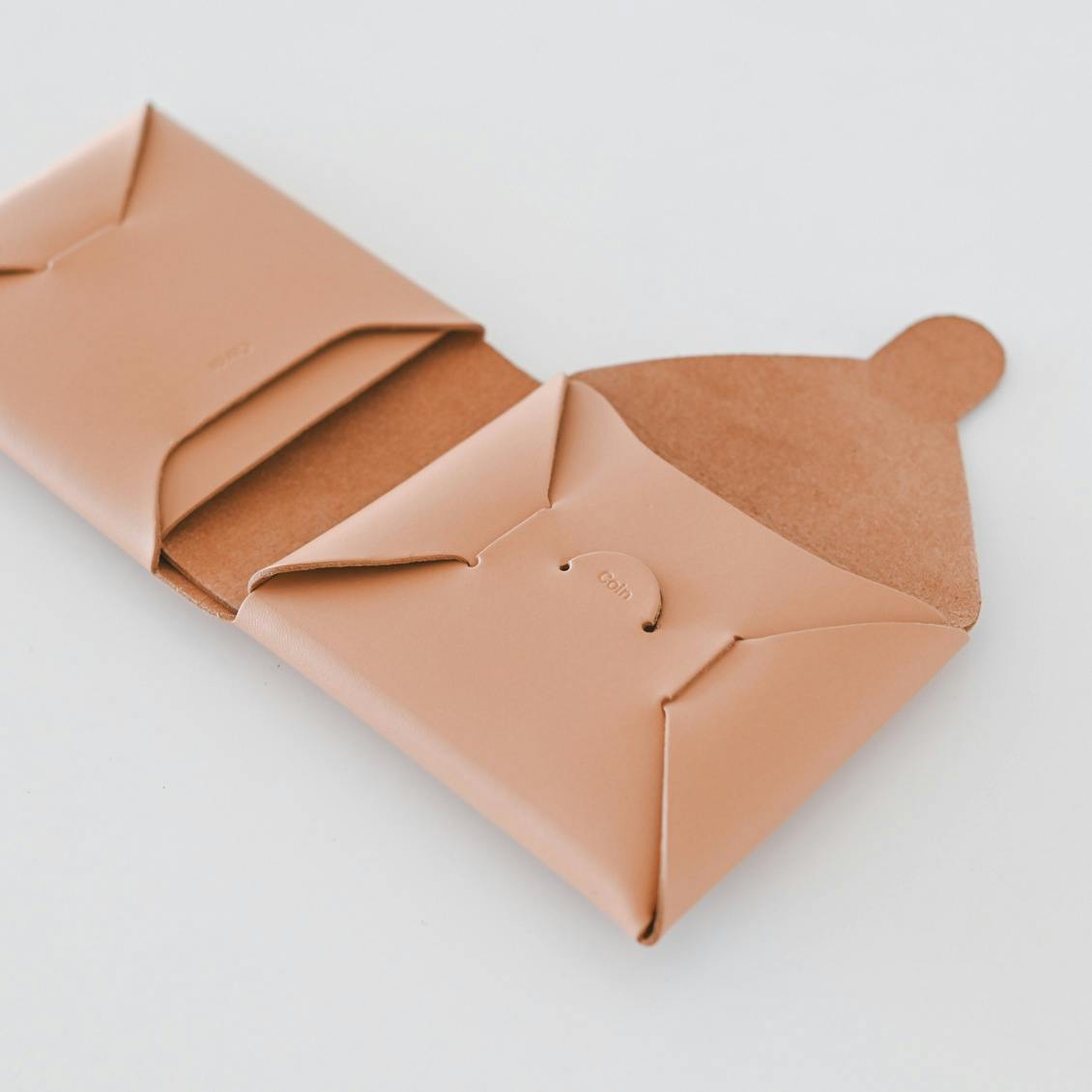 ・1枚革で仕立てた、裏地のない仕様です。財布の内側は革の裏側が表出しています。