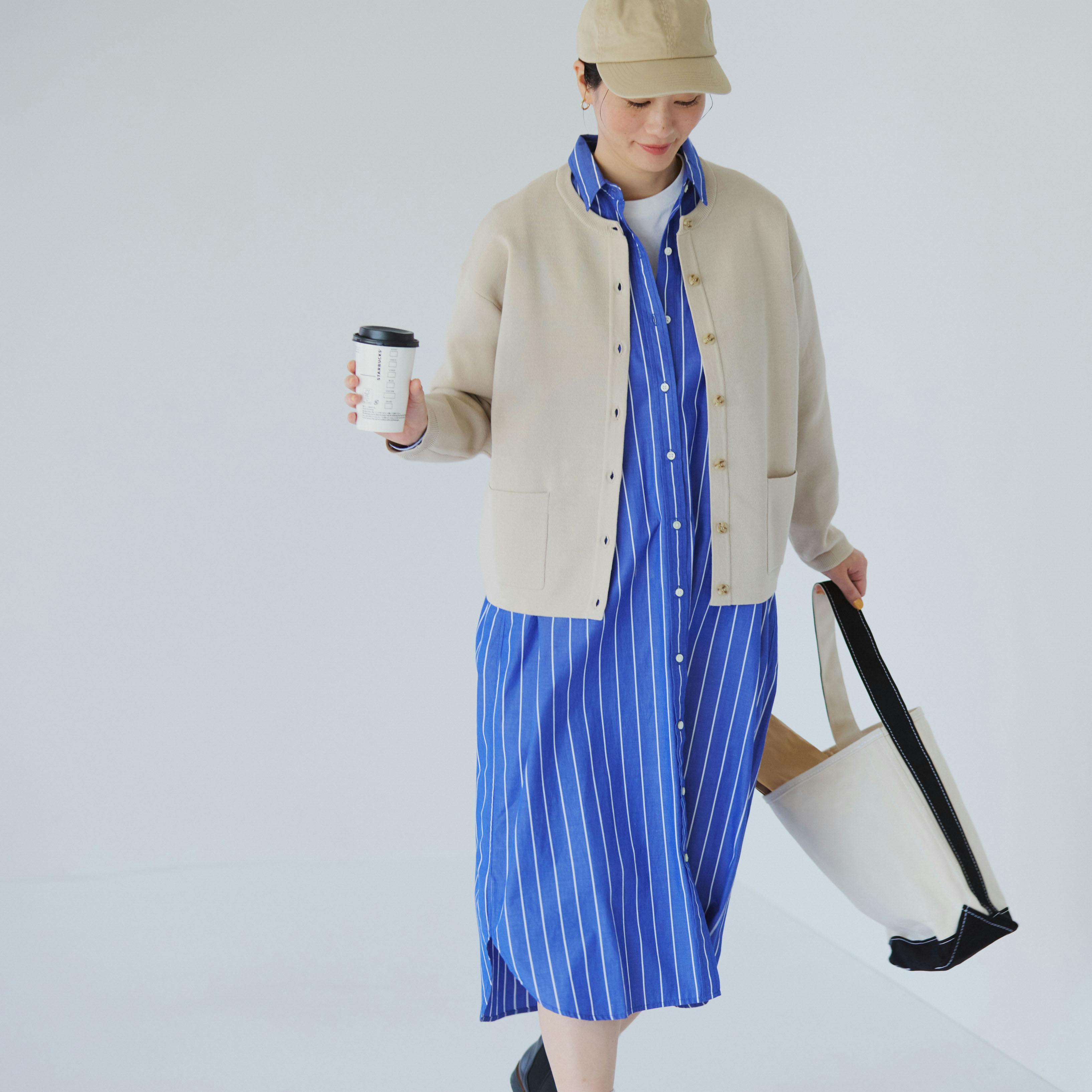 パンツスタイルやスカートはもちろん、ワンピースの上からも。こんなコーディネートはいかがでしょうか。
