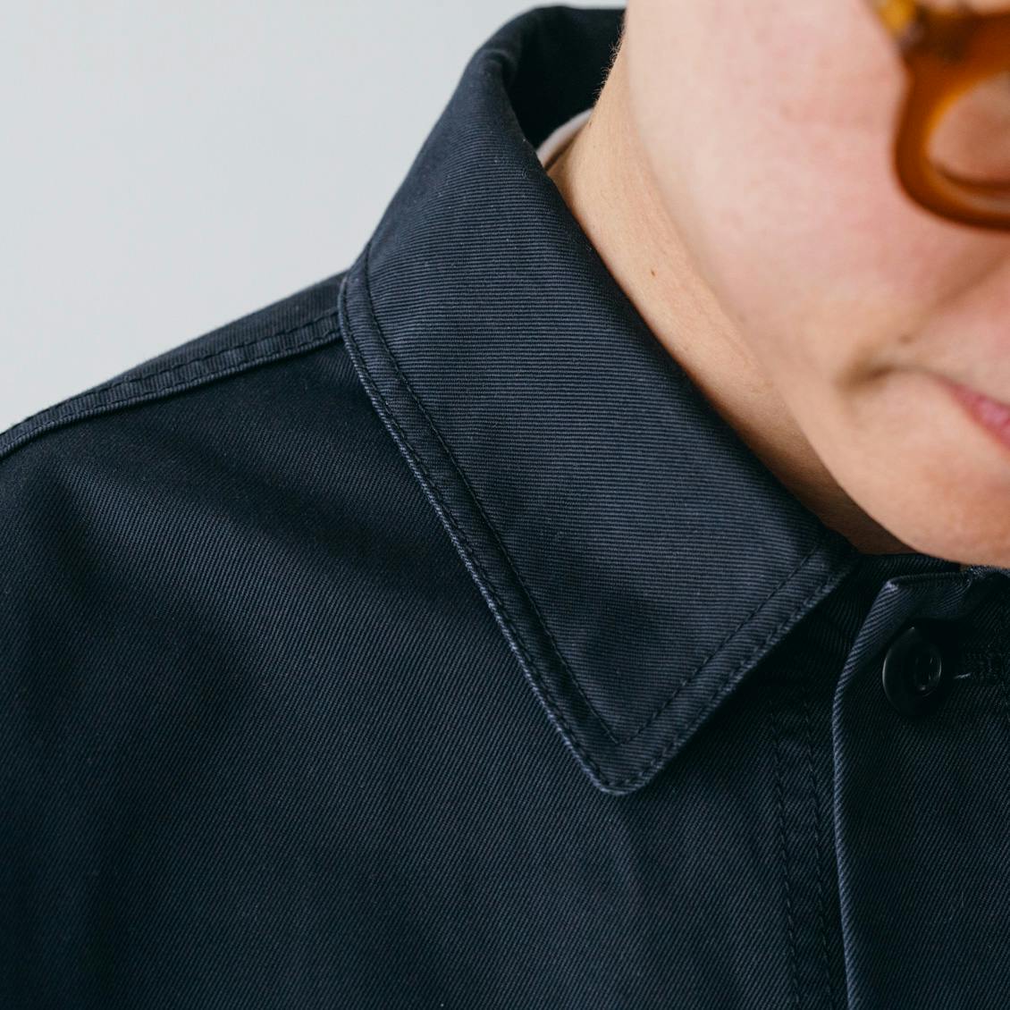 ユニセックスで着やすいバランスを目指し、襟にはわずかに丸みをもたせました。