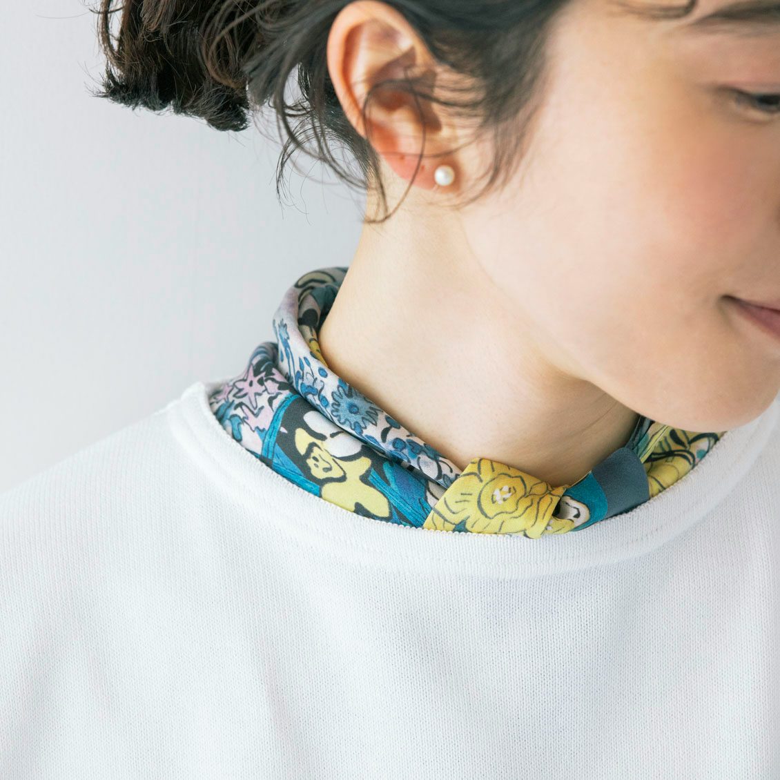 素材は、上質なシルク100%。アクセサリーのように、顔まわりにささやかな華をプラスしてくれます。