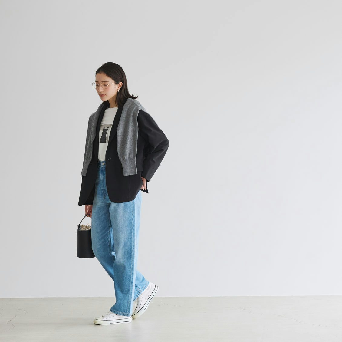 お仕事シーンだけでなく、休日も着られる着回し力があることも大事にしたポイント。オーバーめのシルエットは、カジュアルコーデとも相性がいいんです。