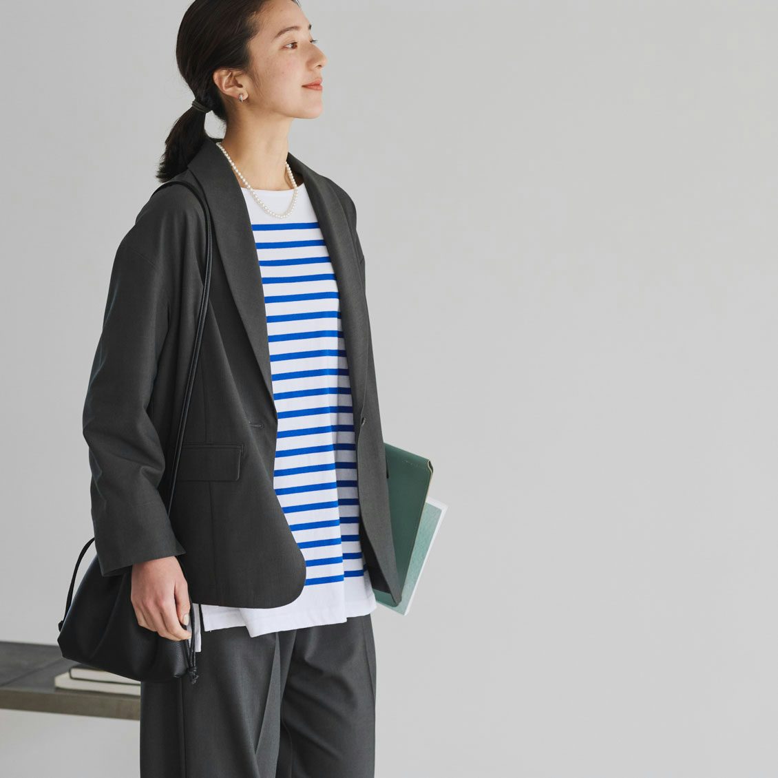そこまでかっちりしなくていい日なら、リラックス感のあるボーダー×パールの組み合わなんていかがでしょうか。
