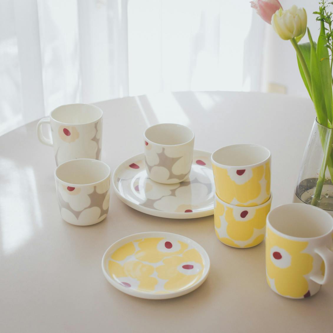 ちょっぴり大胆なUnikko柄ですが、どちらもやさしい色合いだから主張が強すぎず、いつもの食卓にもすっと馴染むのがいいところ。