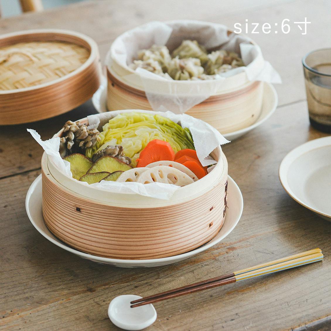 ※材質と製造工程における性質上、せいろ本体にささくれや欠けが生じる場合がございます。