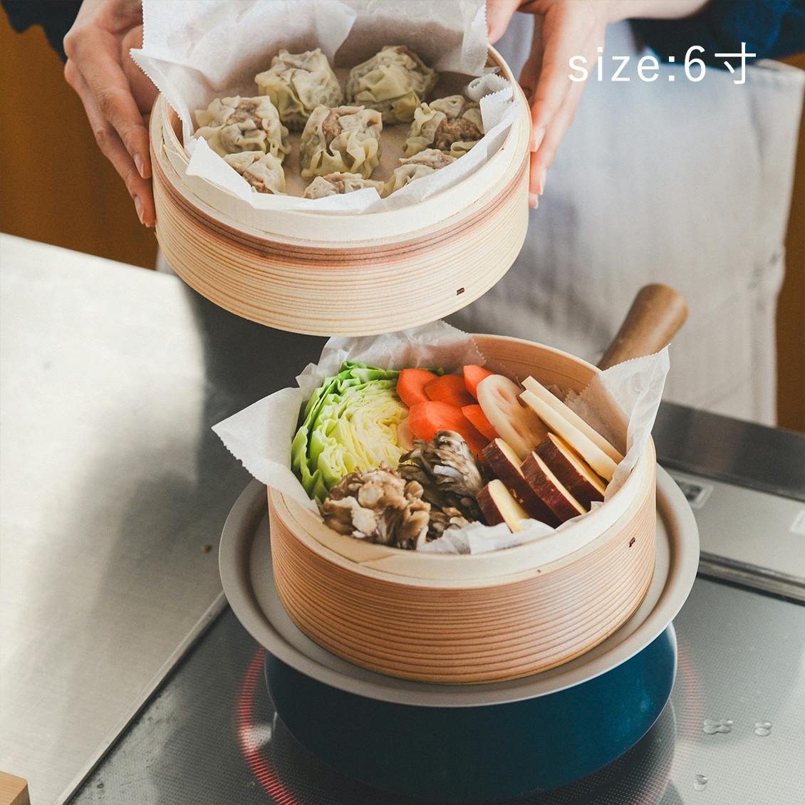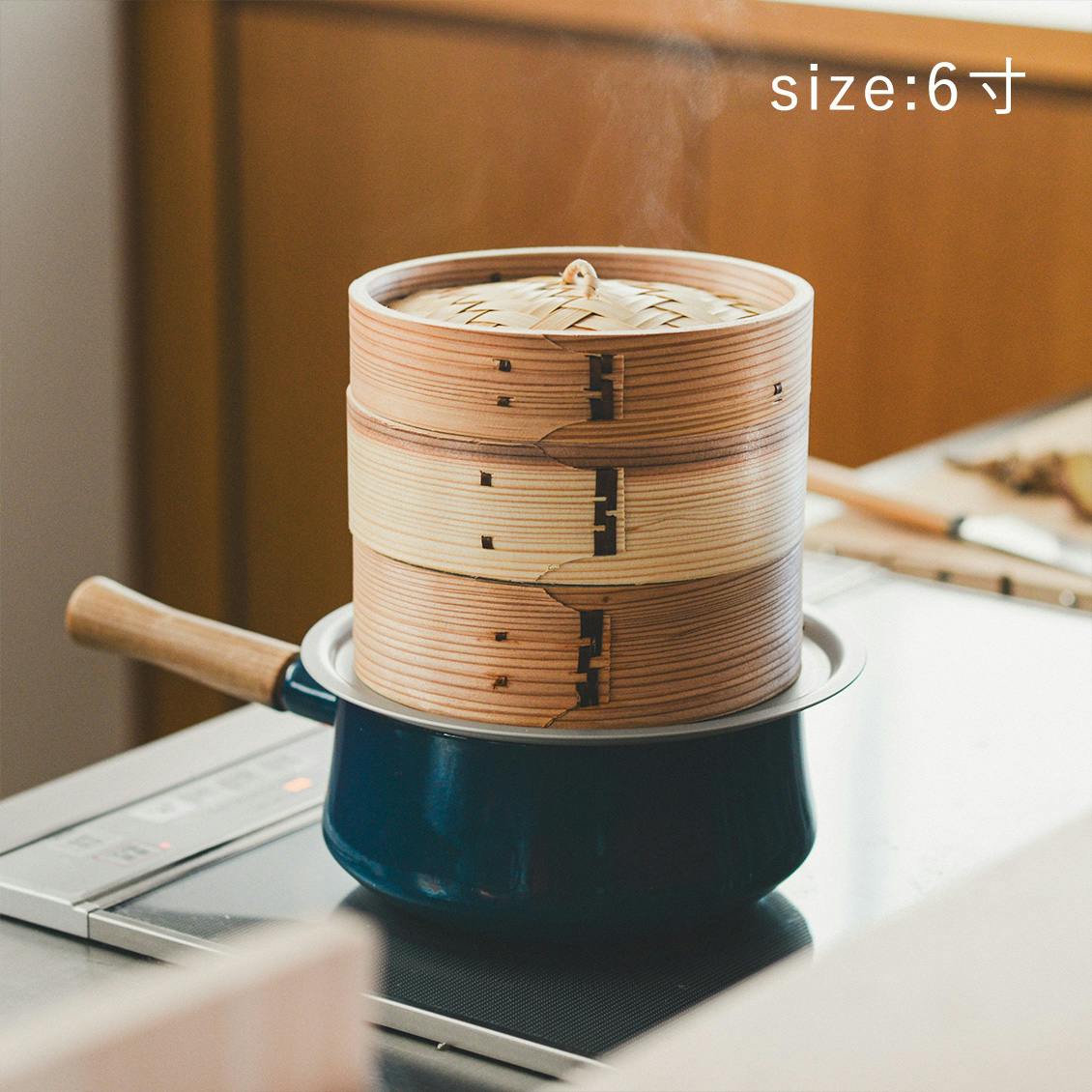 複数段で使いたい場合は、「せいろ(蓋つき1段セット)」 と「せいろ(身のみ)」 を合わせてご購入ください。