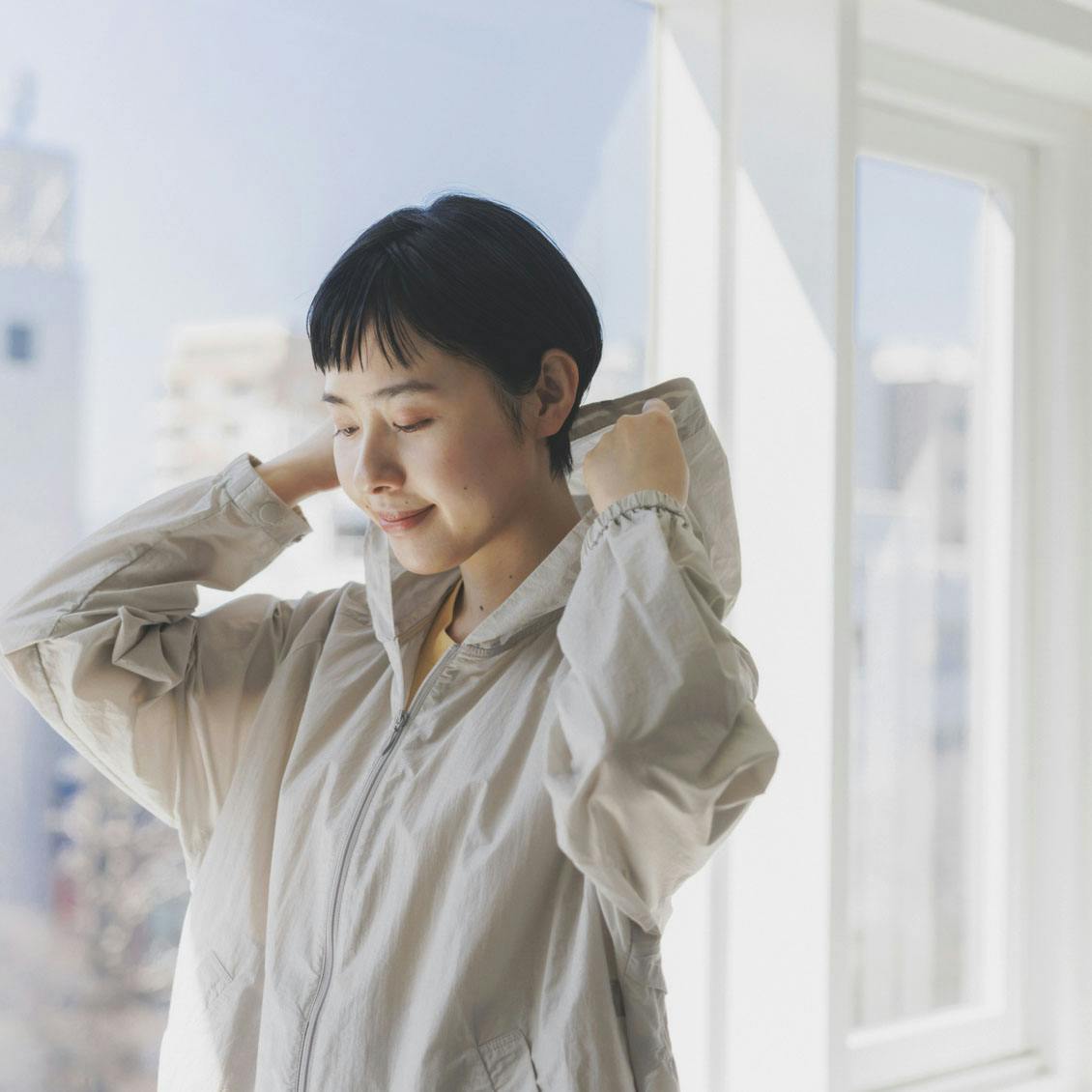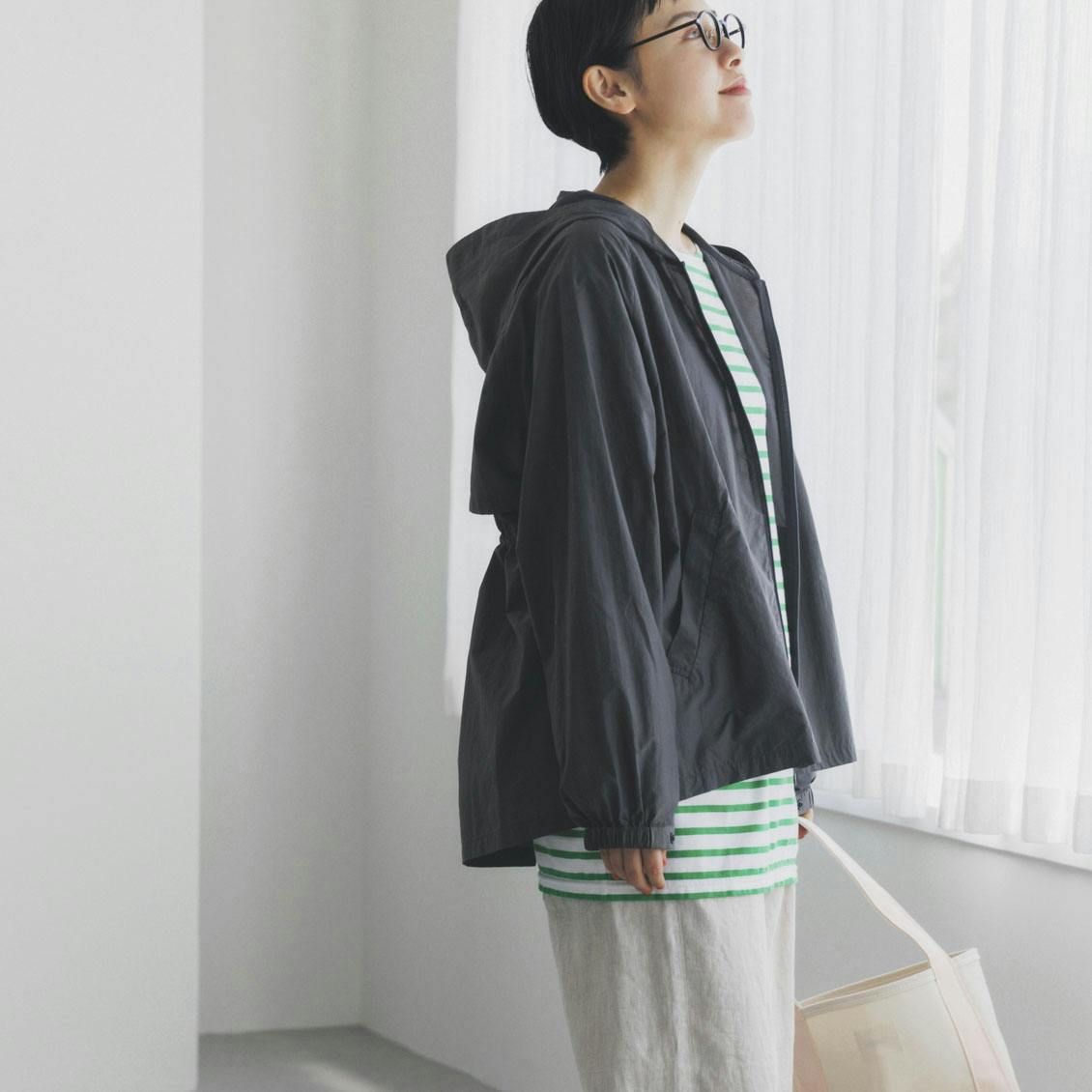 だからこのUVカットパーカーは、いつもの装いにちゃんとなじむよう、生地感やシルエットにこだわりました。