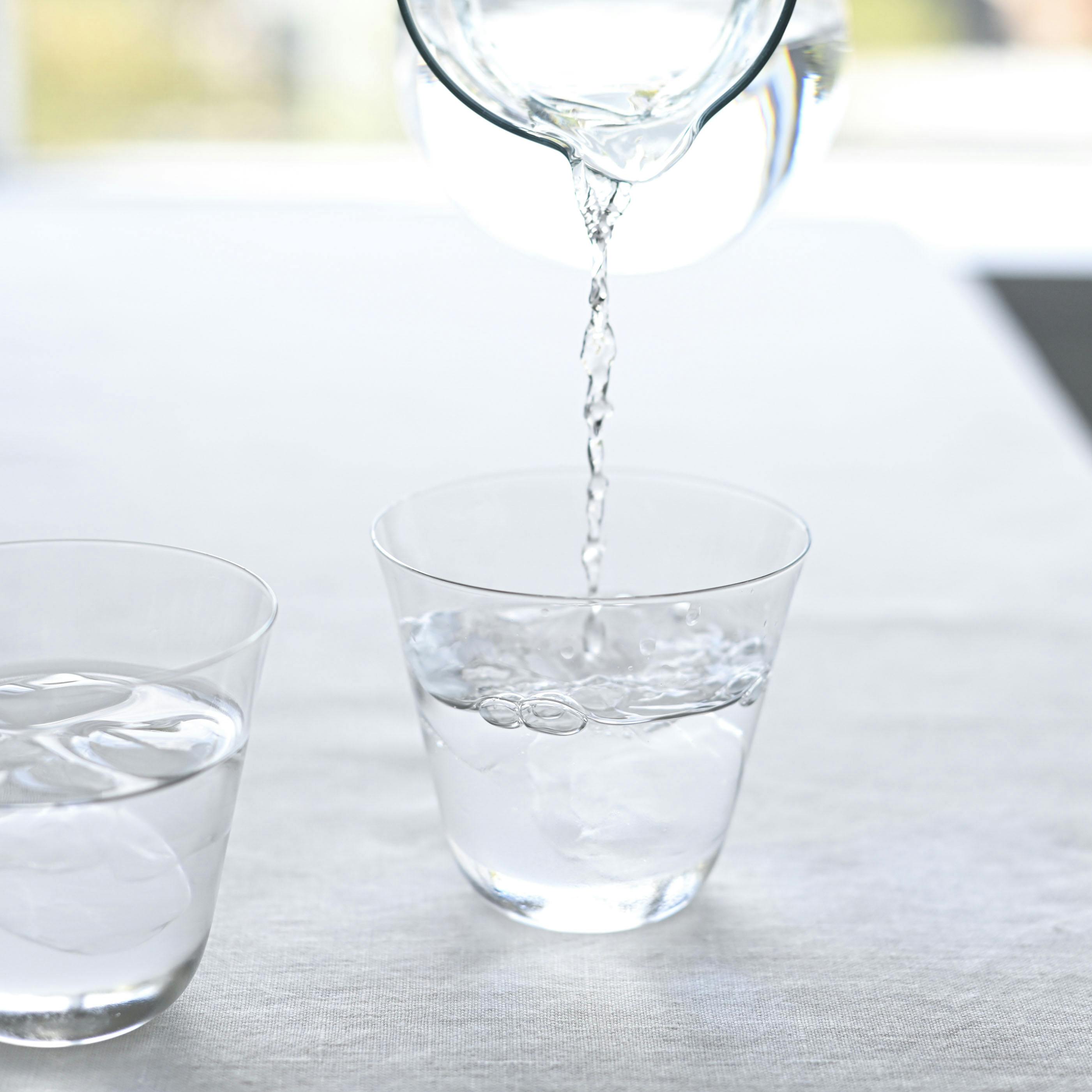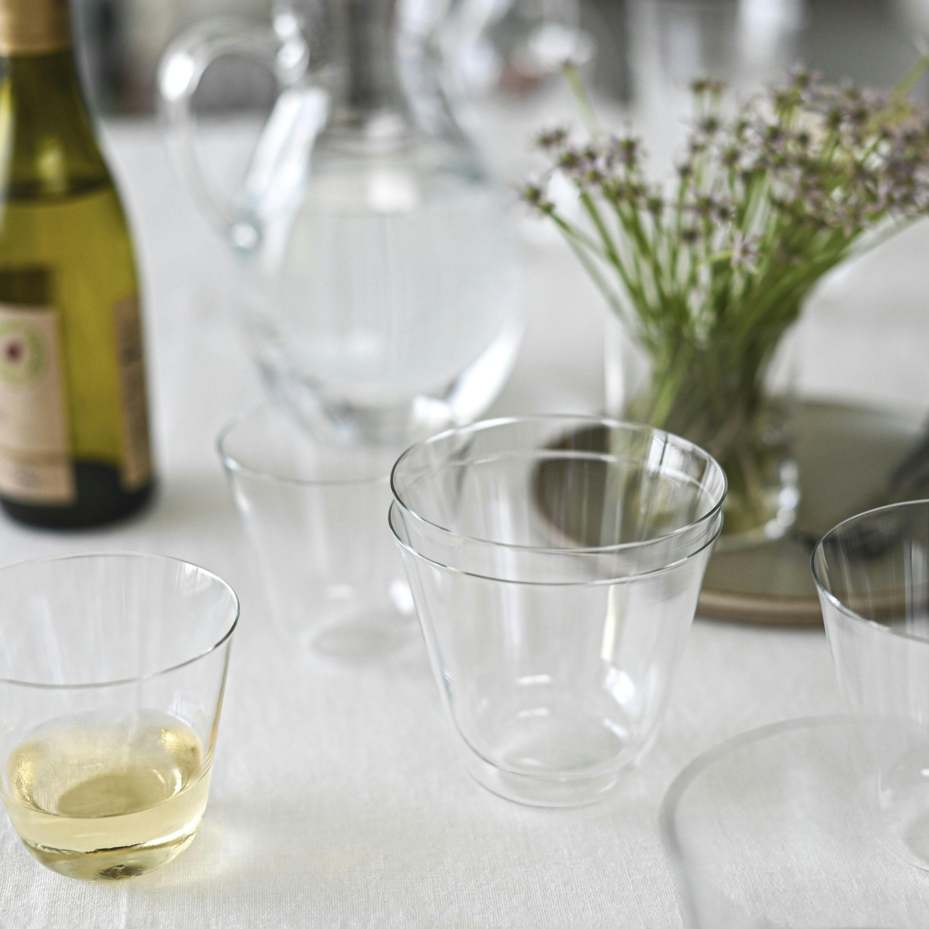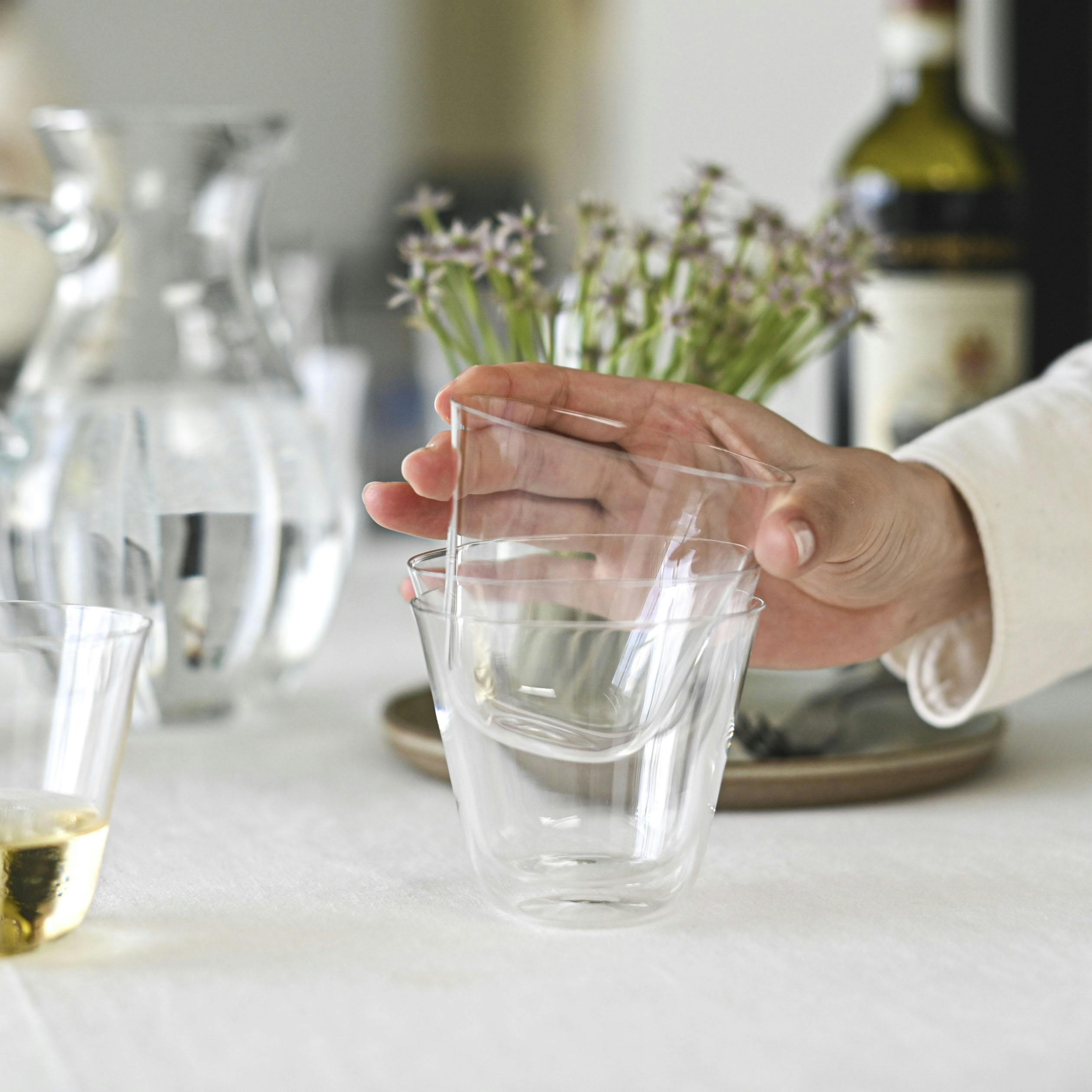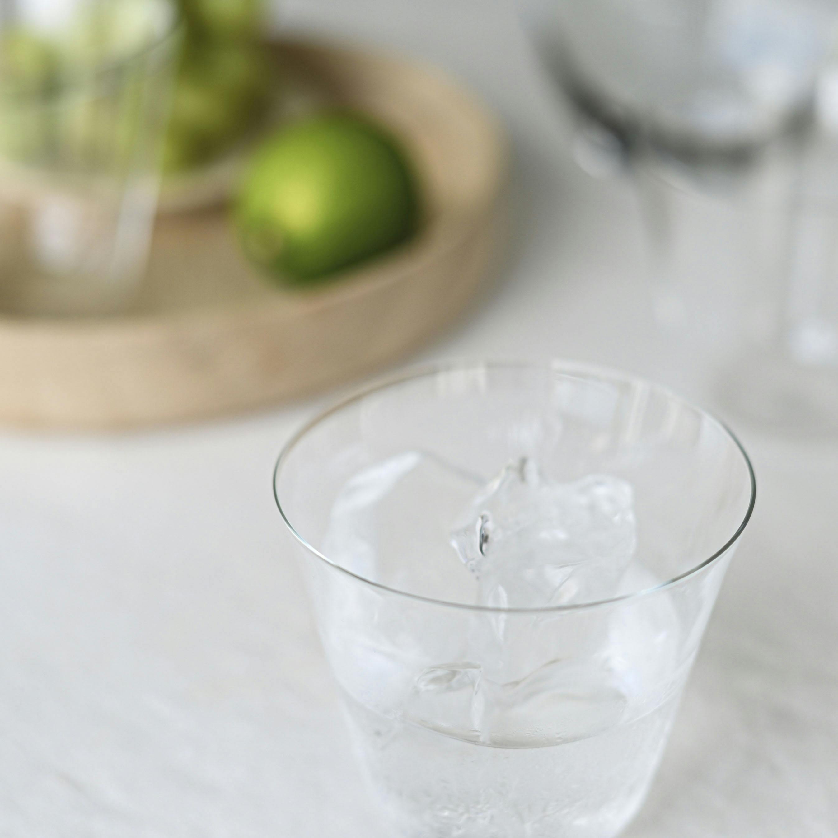 薄く透明なガラスの儚い佇まいも、このグラスの魅力。氷がカランとあたる音は涼しげで、飲み物の色もきれいに映ります。