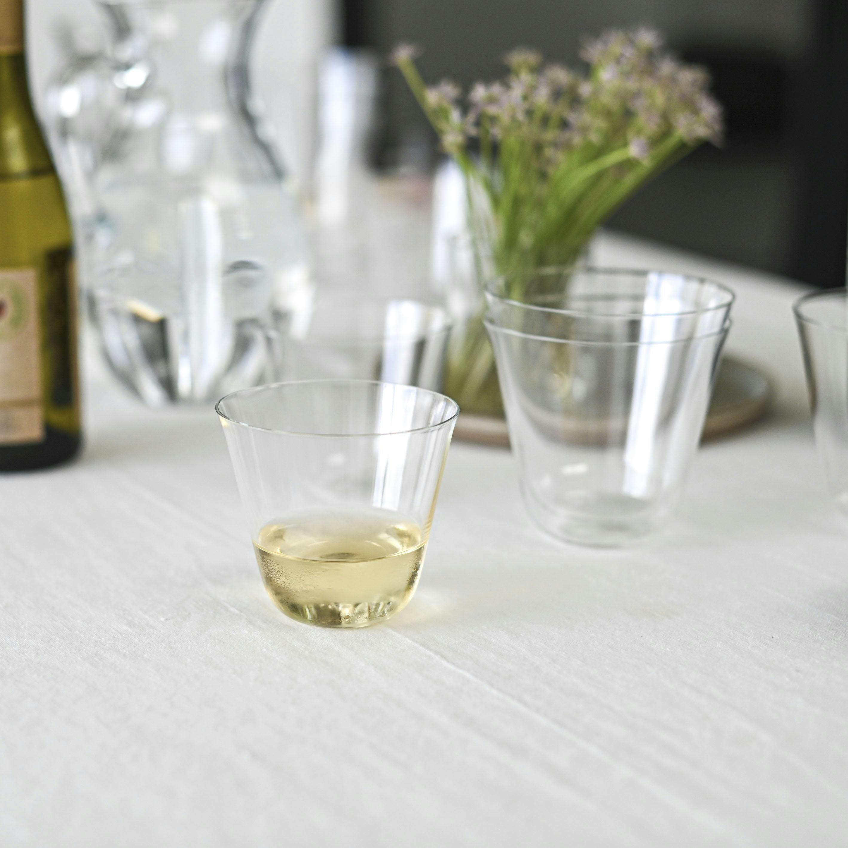 ステム(脚)がないぶん倒れにくく、ソファー近くのサイドテーブルでゆっくり晩酌したい時や、お客さまが集まるときにも気兼ねなく。