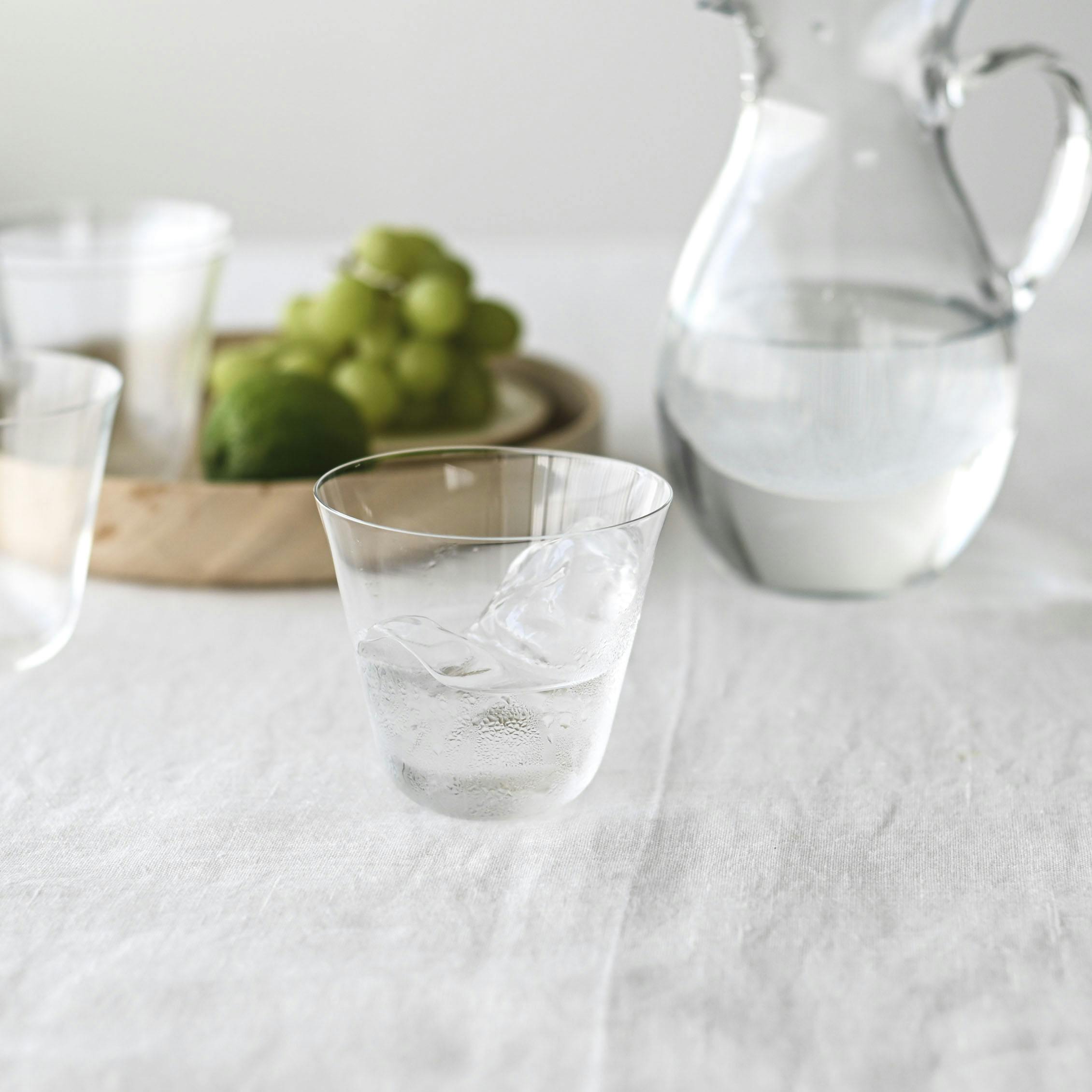 薄く透明なガラスの儚い佇まいも、このグラスの魅力。氷がカランとあたる音は涼しげで、飲み物の色もきれいに映ります。