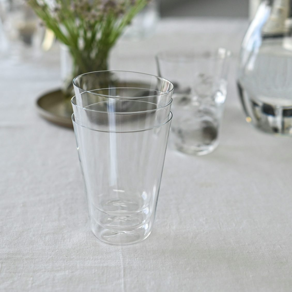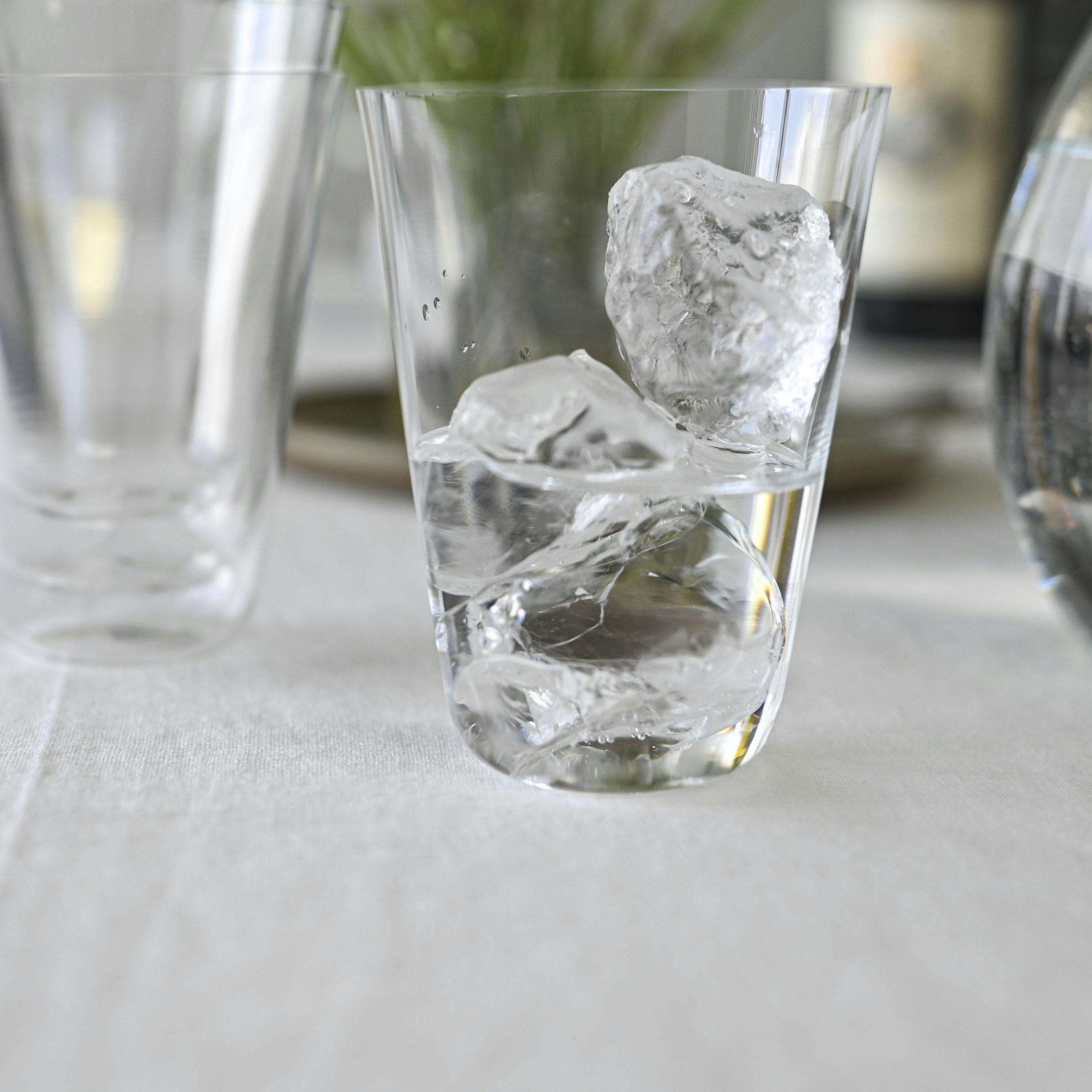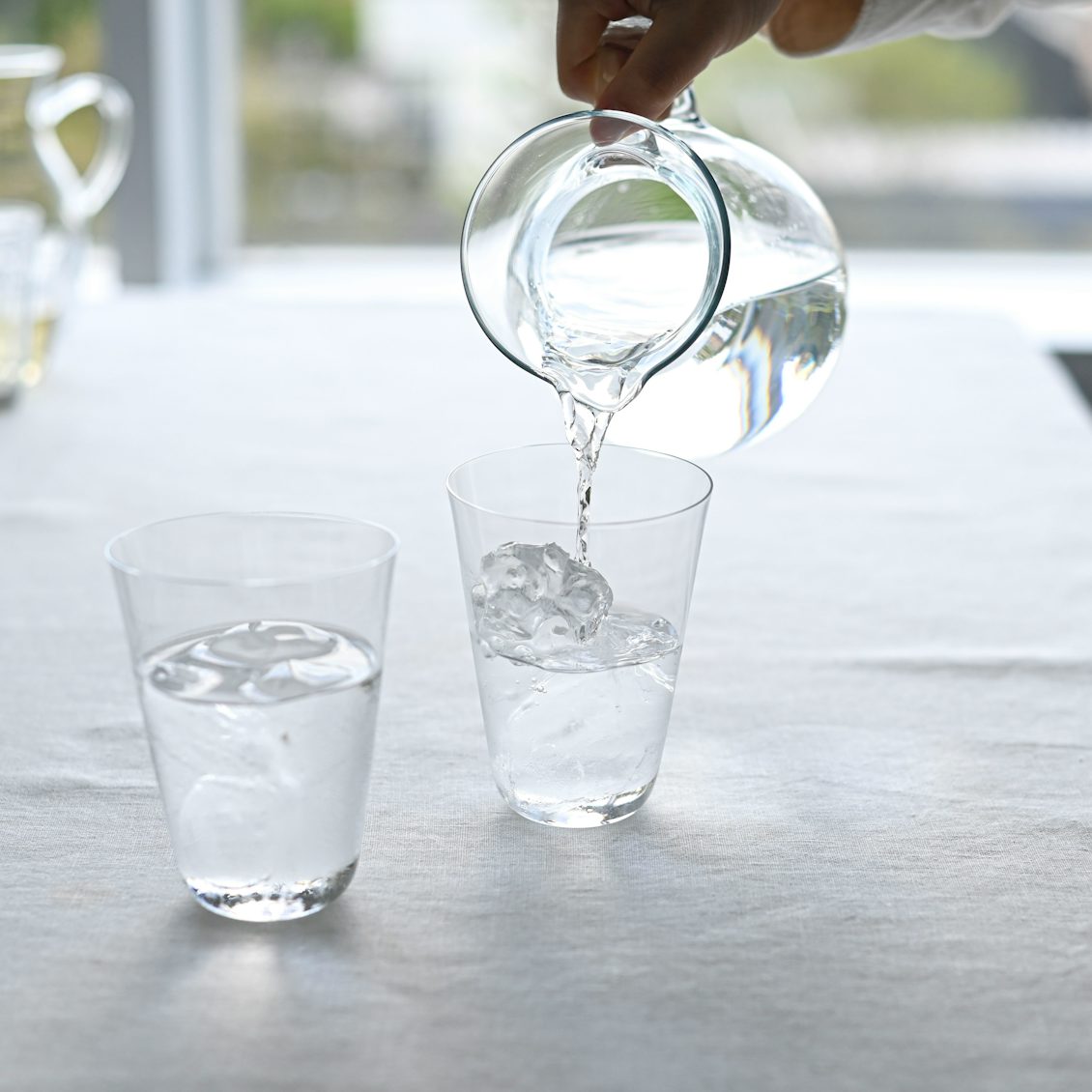 薄く透明なガラスの儚い佇まいも、このグラスの魅力。氷がカランとあたる音は涼しげで、飲み物の色もきれいに映ります。