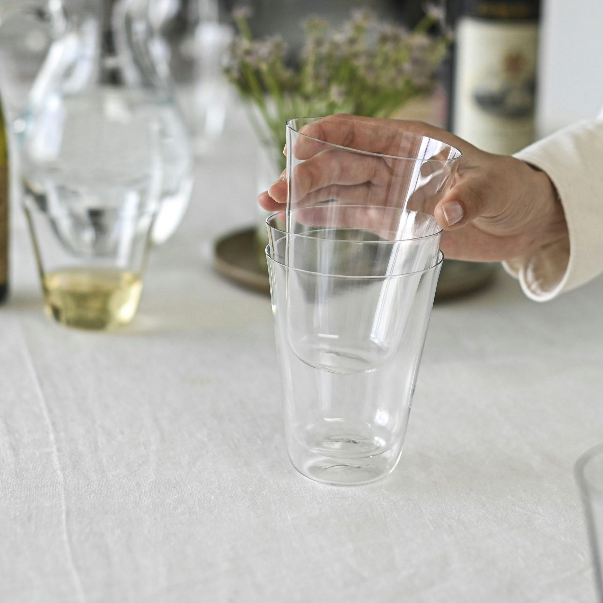ビールやワイン。梅やプラムシロップのソーダ割りなど、味わいを愉しむ飲み物との相性を考えて作られたグラスです。