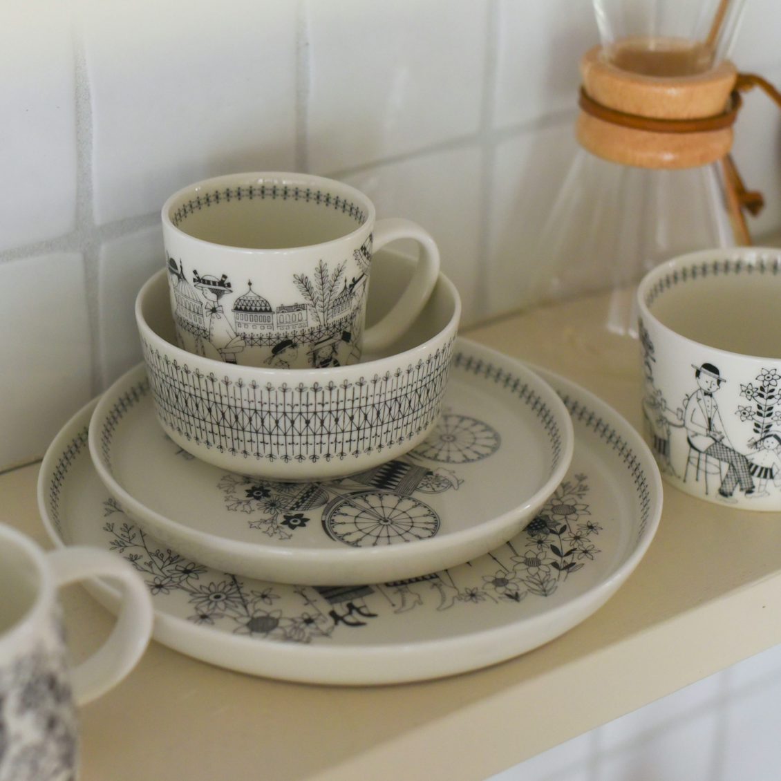 現行のアラビア食器にエミリアの図案を施す形での復刻なので、ヴィンテージに比べて耐久性が高く、普段使いしやすいのも嬉しいポイント。