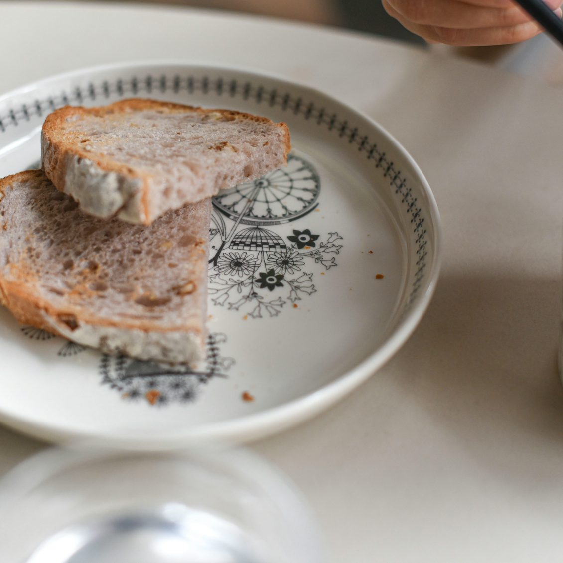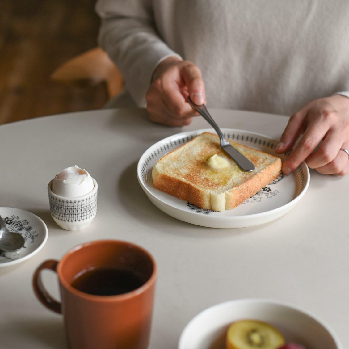 19cmプレートは、お茶の時間や食事に重宝する万能なサイズです。なかでも食パンは、あつらえたかのようにぴったり。