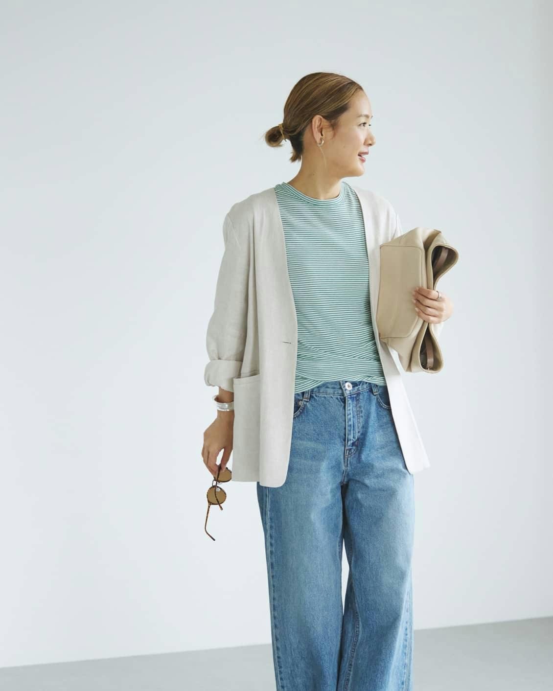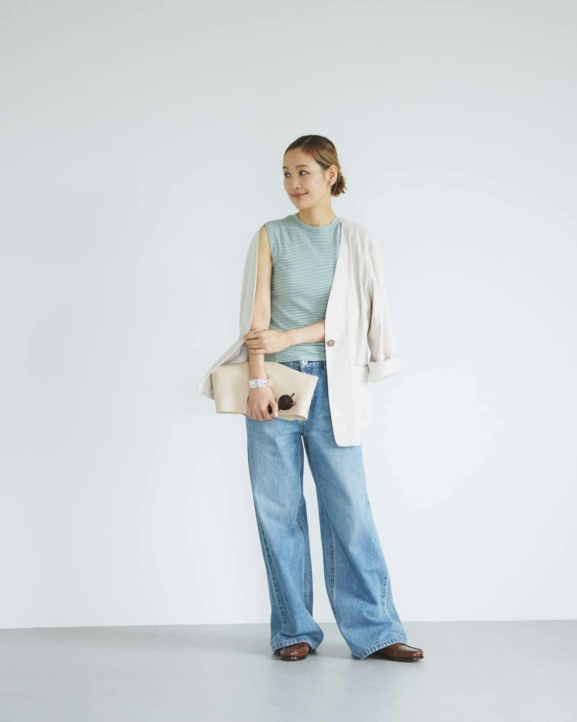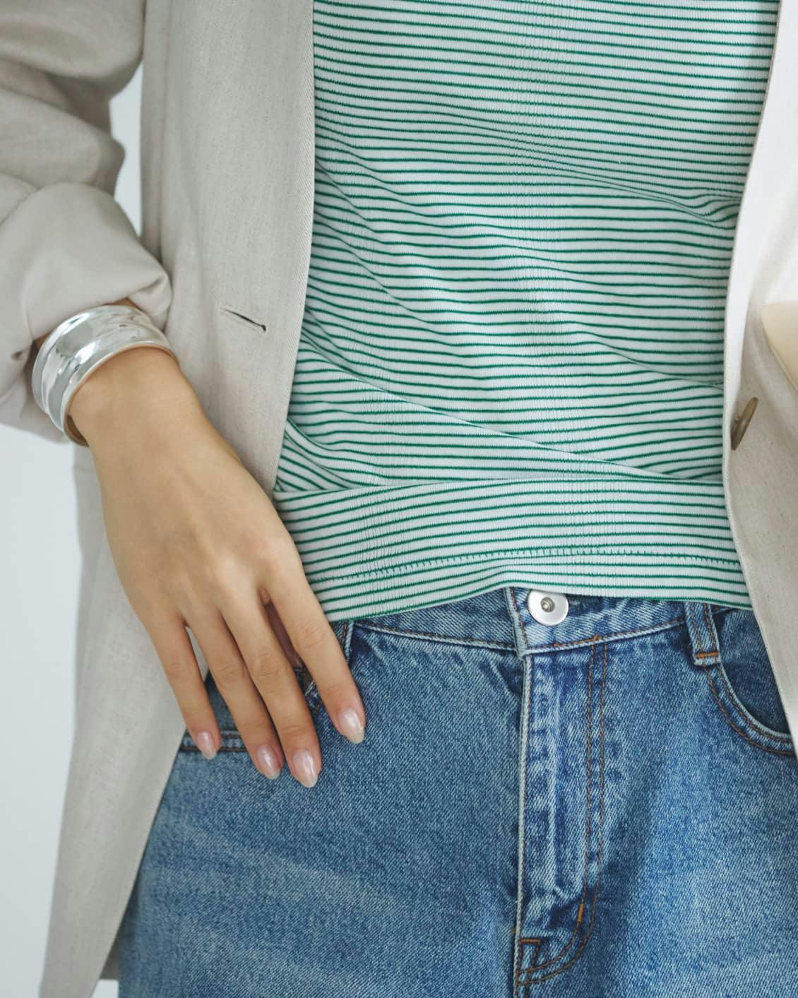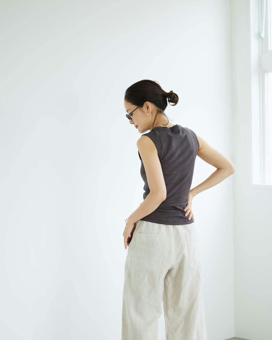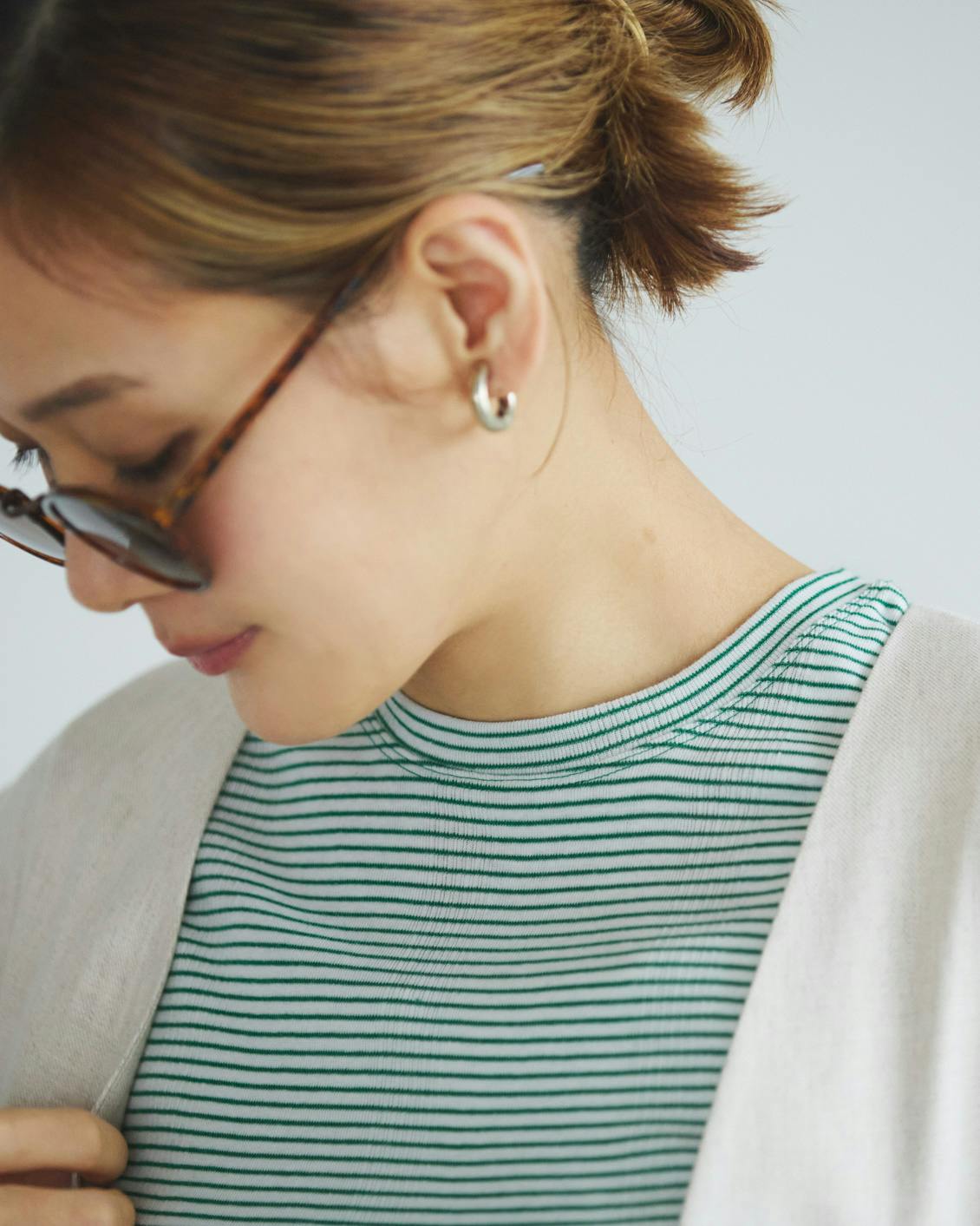 インナーとして重宝する一枚ではありますが、そのまま着てもヘルシーな印象なので、羽織を脱いだときや、一枚で着こなしたいときも安心です。