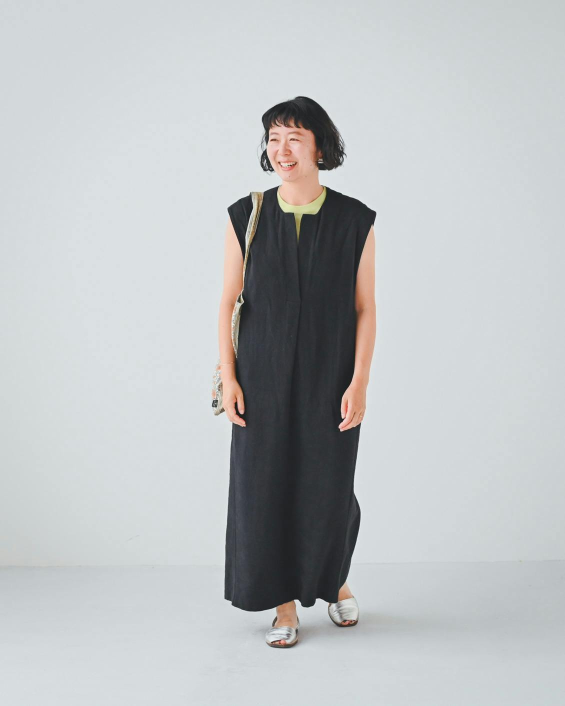 ワンピースやサロペット、オールインワンなど、形に特徴があり、洒落た重ね着に頭を使う。そんなアイテムにも、さらりと馴染みます。