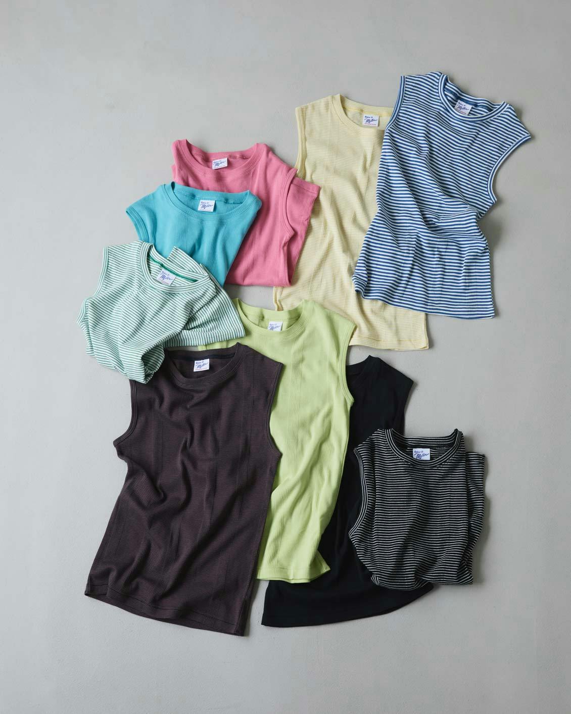 何枚あっても嬉しいタンクトップは、全9色展開。