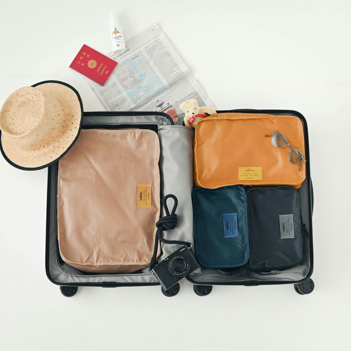 今回ご紹介するアイテムはただ仕分けるだけではない、旅の準備から帰宅した後にもうれしい機能がたっぷり詰まった、nähe (ネーエ)の「トラベルパッキングバッグ」。