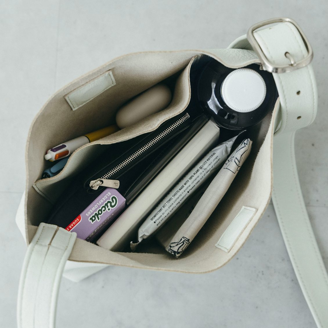 柔らかくて口ががばっと開くので、中身が見やすく、荷物の出し入れもスムーズです。