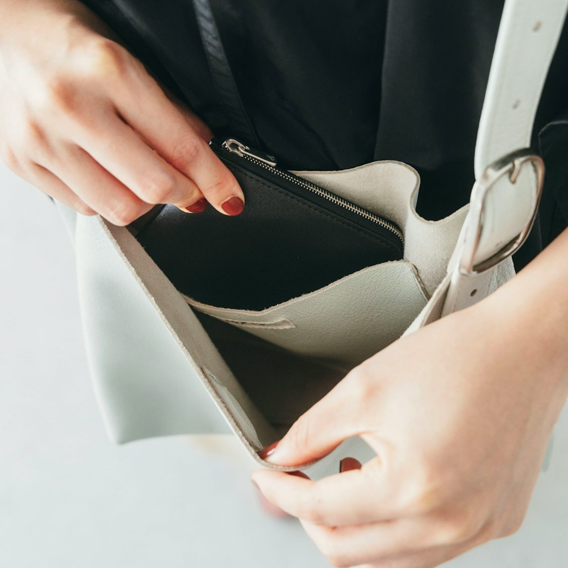 カジュアルな気分のときには斜め掛け、上品に持ちたいときは肩掛けで。私たちの毎日に寄りそう、ちょうどいいバッグです。