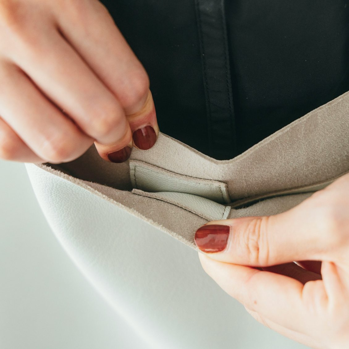 ミニマルなデザインでコーディネートを選ばず、しなやかなゴートレザーは見た目にも品の良さを感じられます。