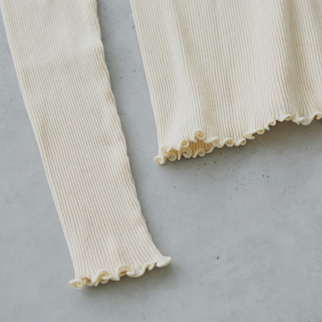 脇に縫い目が出ないチューブ編みで作られているので、素肌に触れてもノンストレス。