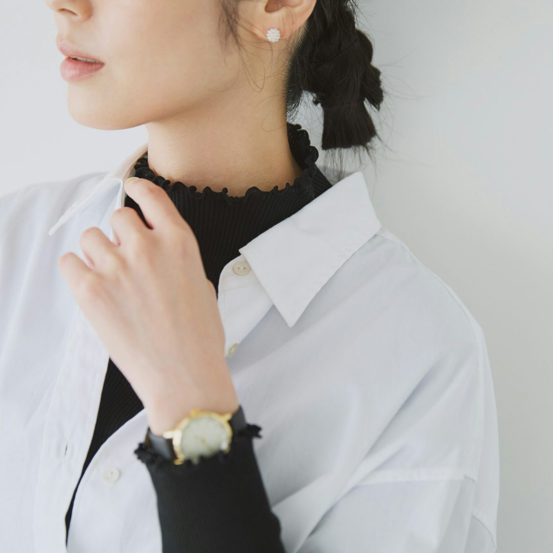 アクセサリーがなくても品よくおしゃれに決まります。