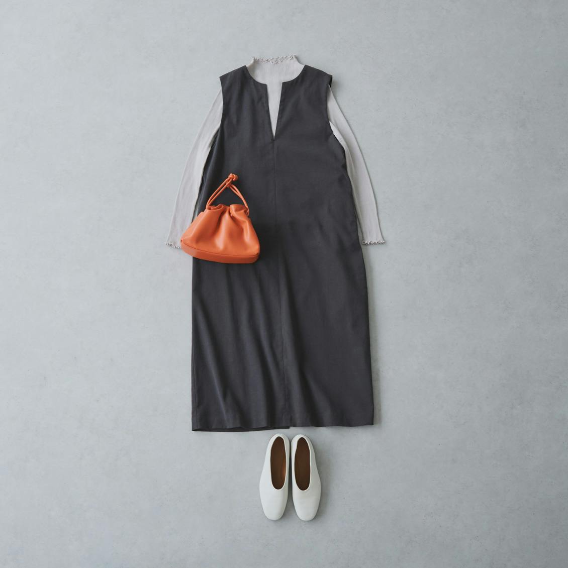手持ちのワンピースやニットの下に重ねて使いやすい万能な1着です。