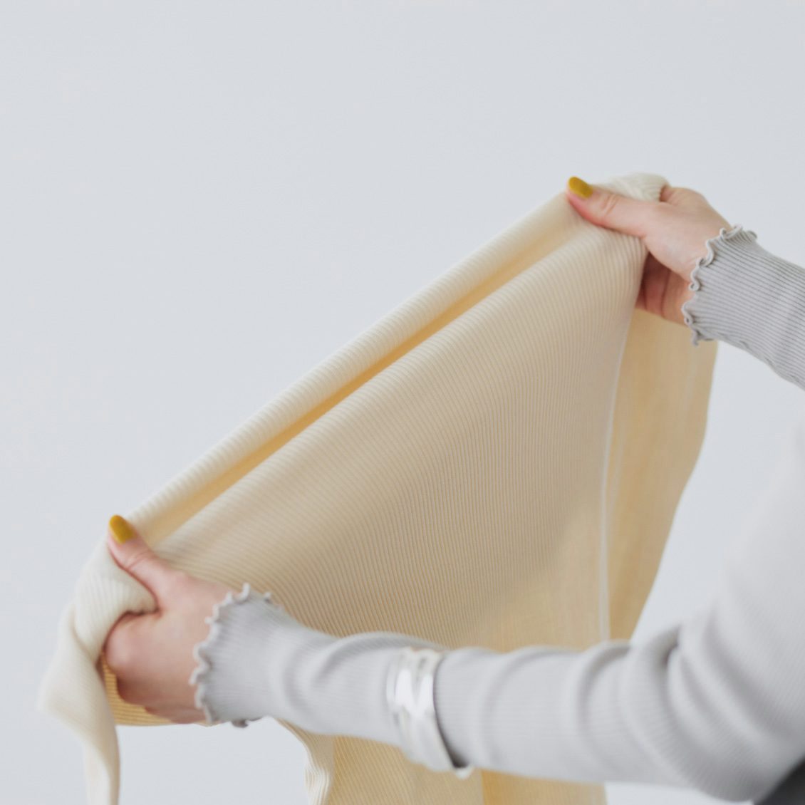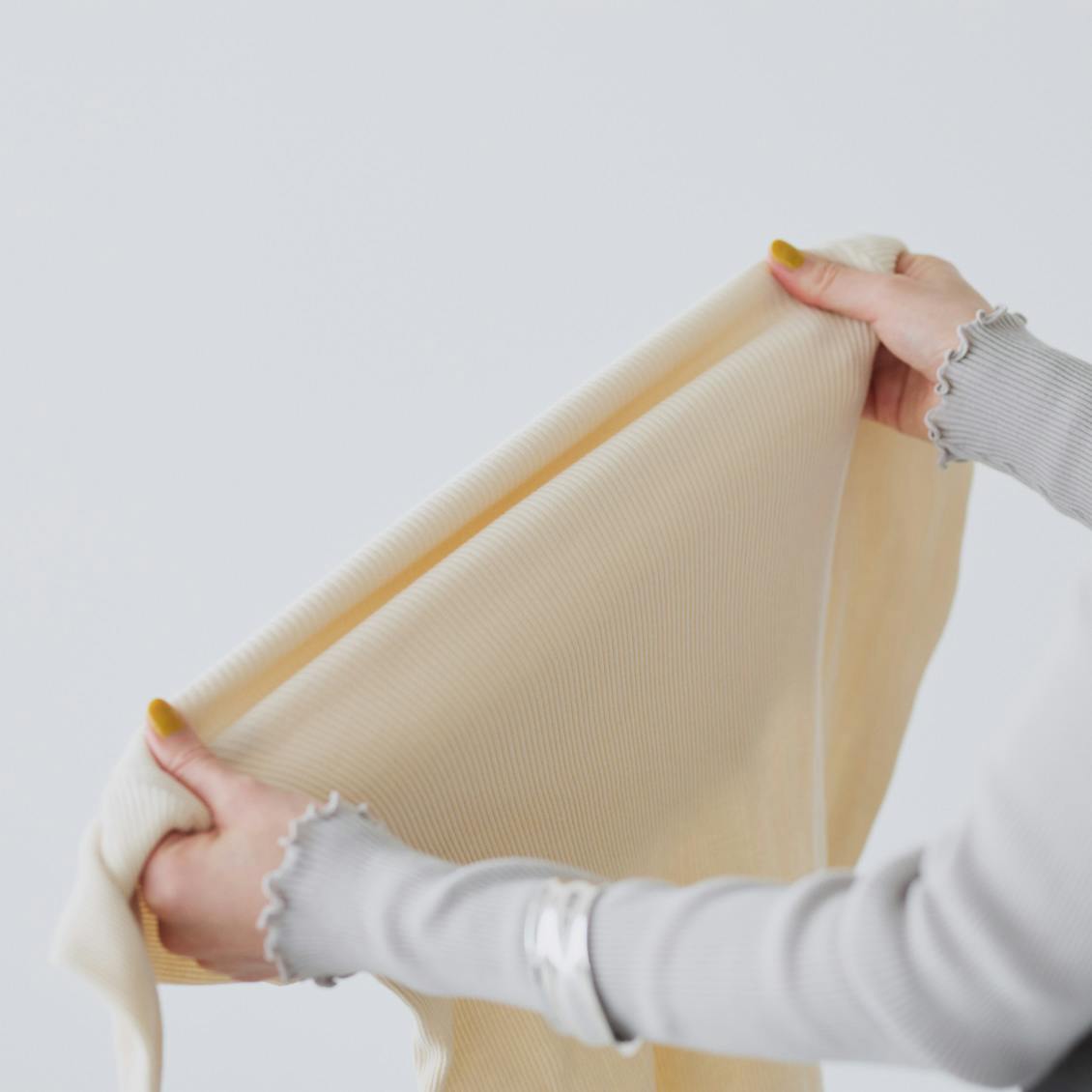 ぐいーんと伸びる細めのリブで、さまざまな体型の方にフィットします。