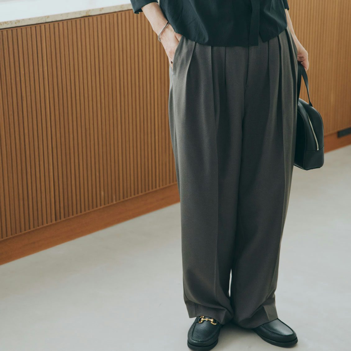 おしゃれ着としてはもちろん、カジュアルな装いに合わせても決まる、大人のためのワイドタックパンツ。