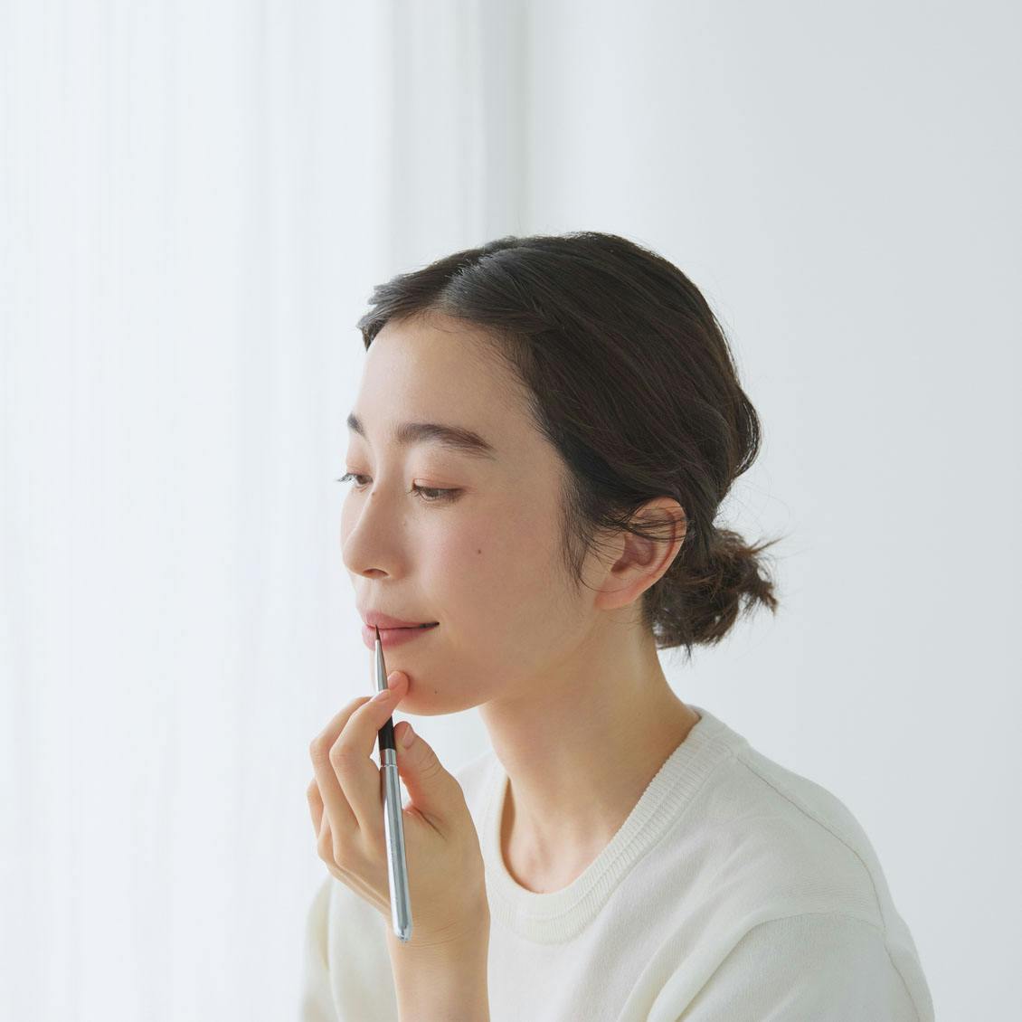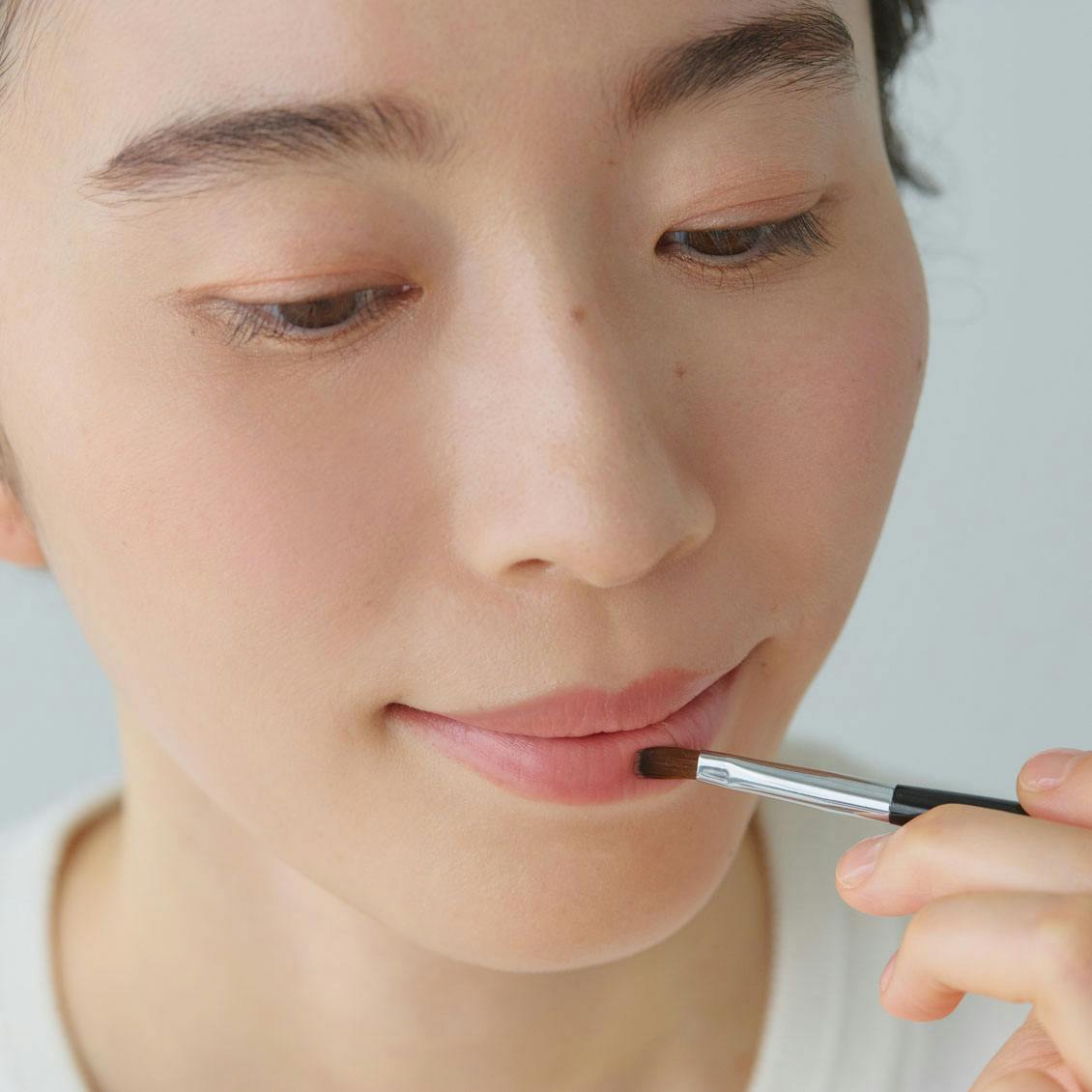 繊細な唇に使っても肌あたりはとてもなめらか。でもコシはあるので狙った形で唇の輪郭を描けました」