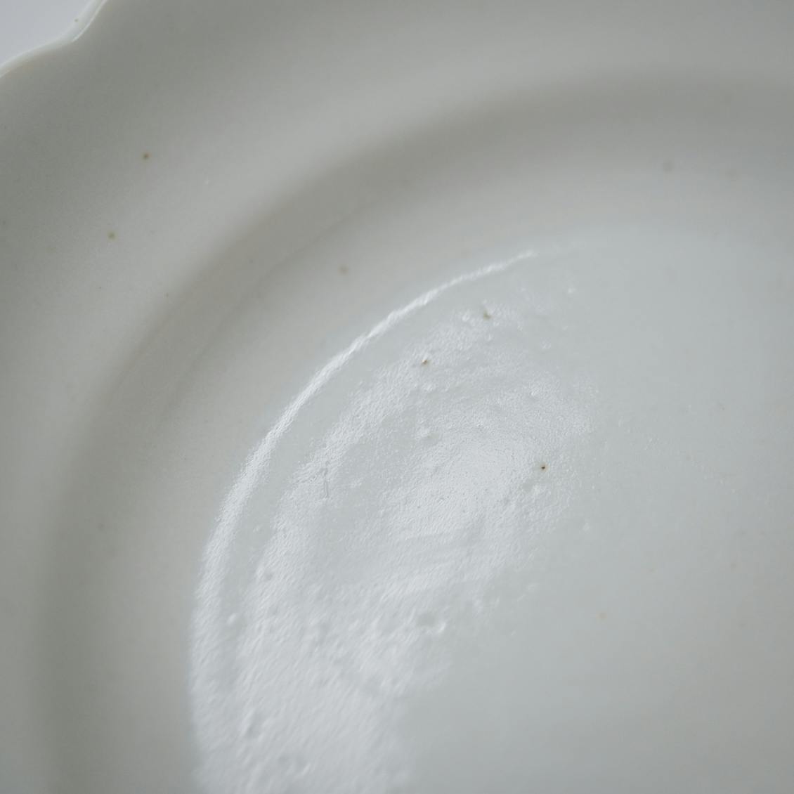 どこかアンティークのような雰囲気を感じる、ぽってりとした花リムが特徴のこちらのプレート。