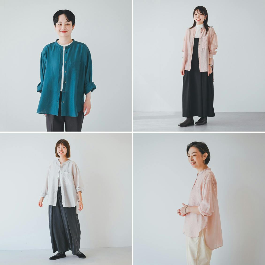 一枚で着たり、羽織ったり。合わせるものを変えることで、年中着まわしできるのが羽織れるブラウスのいいところ。