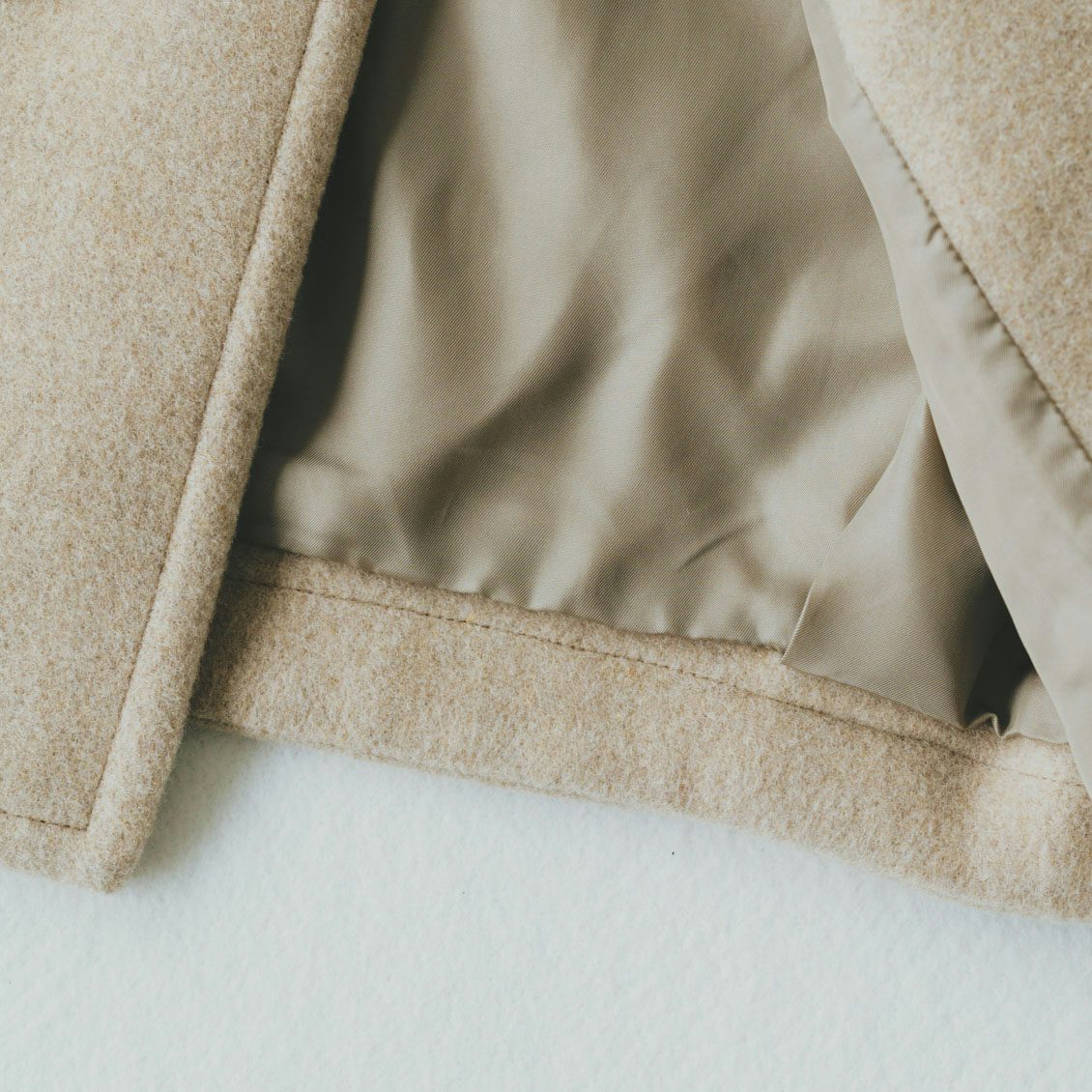 上質なバルキーウールをたっぷり使用し、コートの肌触りはふわもちっと、なめらかな質感になっています。