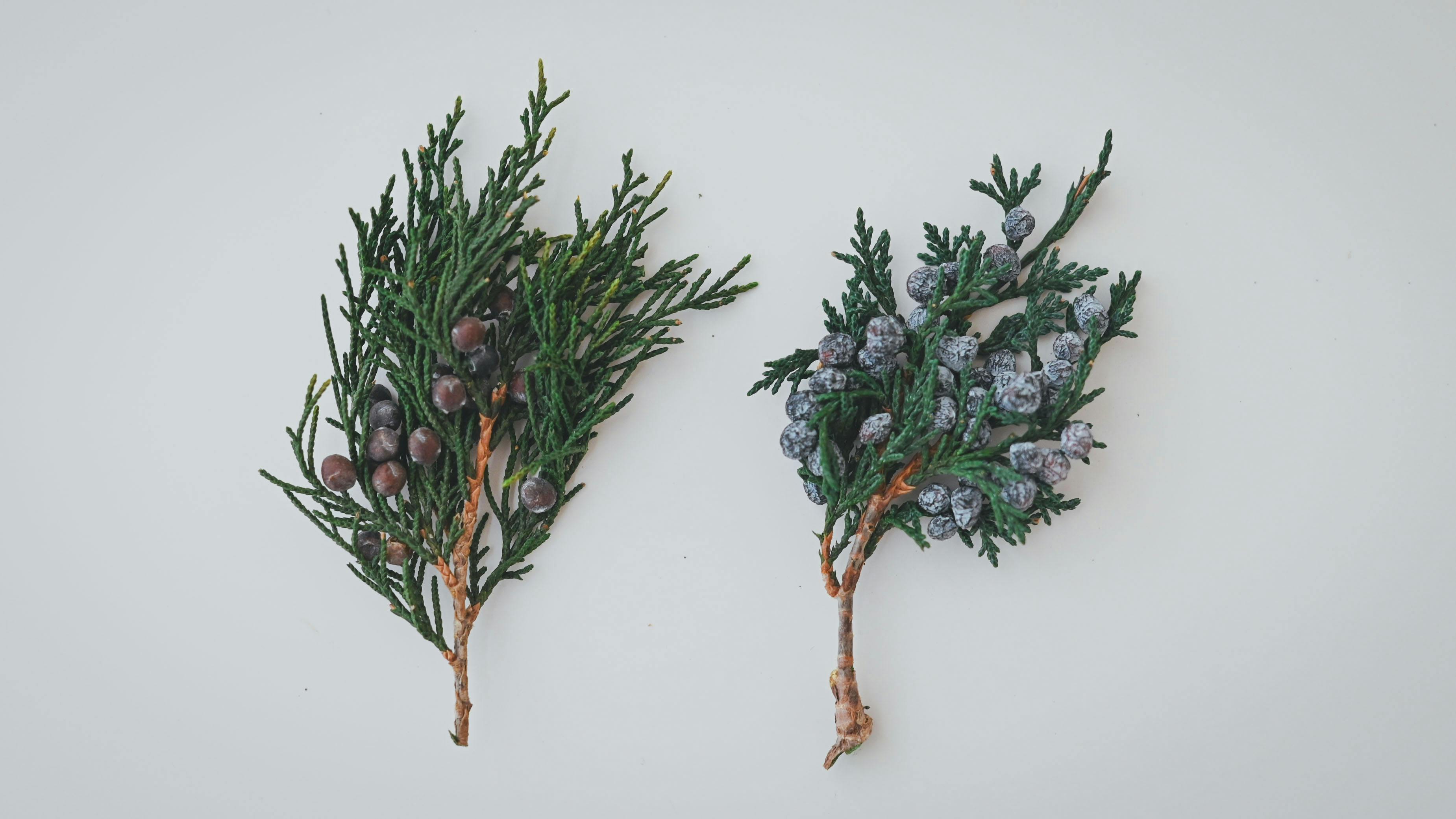 写真左から時計回りに、ワタの実、南天の実、エリンジューム、ヒムロスギ、ストーベ、グニーユーカリ、マウンテンジュニパー。