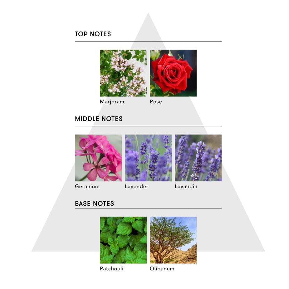 ローズやゼラニウム、ラベンダーの穏やかなフローラルの香り がふわっと広がる「情熱的な目覚め」。