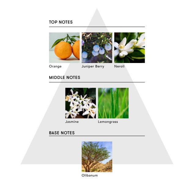 はじめは、気分転換にぴったりなフレッシュさを感じ、徐々にフランキンセンスやジャスミンなどの香りが混ざり、マイルドに なっていきます。