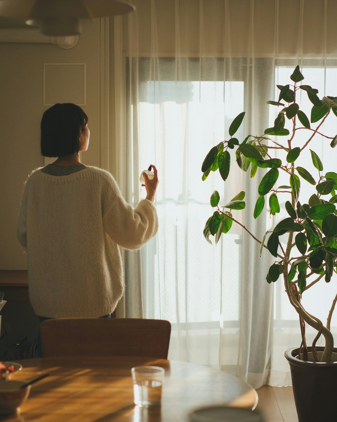 朝、植物の世話をした後や、仕事を始める前に使ったり、食事の後、空間をリフレッシュさせるための換気をしたら、仕上げにシュッとしたり。