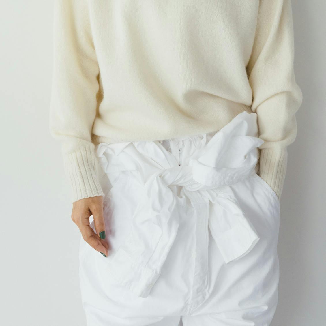 程よくゆとりのあるニットは、重ね着にも最適。とことん着回しを楽しめます。