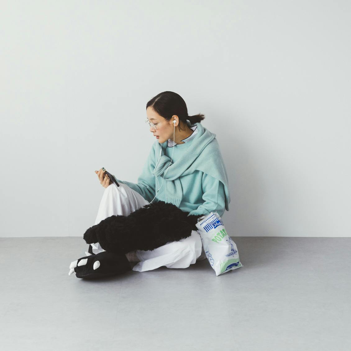 ふわっと軽いニットで、足取りも颯爽と。本を買って、美味しい調味料も買って。荷物いっぱいでも心かろやか。公園に寄り道でもしようか、考えながらてくてく歩く。