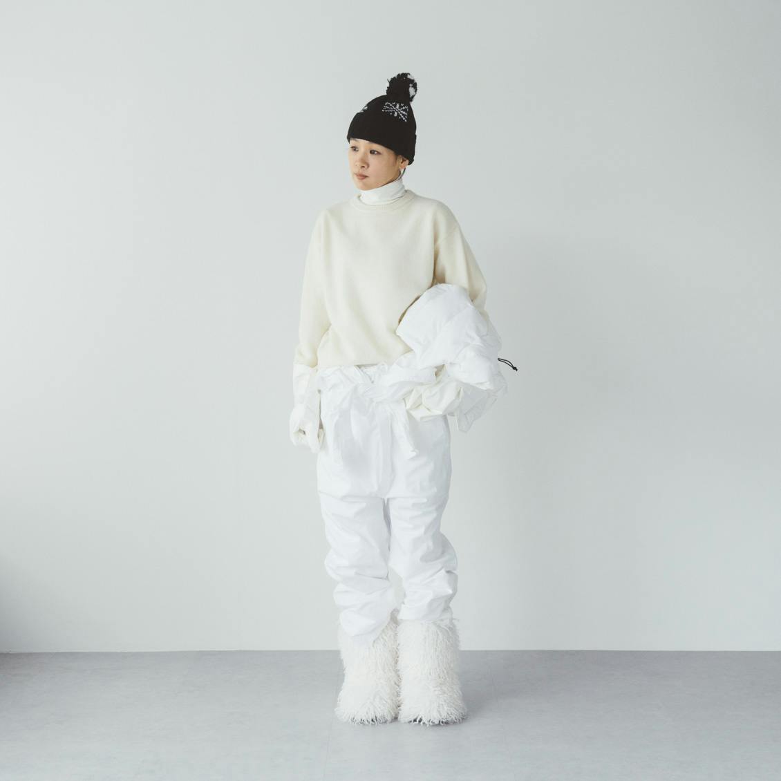 首のリブも、合わせてちょっぴり太めに。そのまま着ても、シャツやハイネックを重ねても、ちょうどいい塩梅になるように調整。