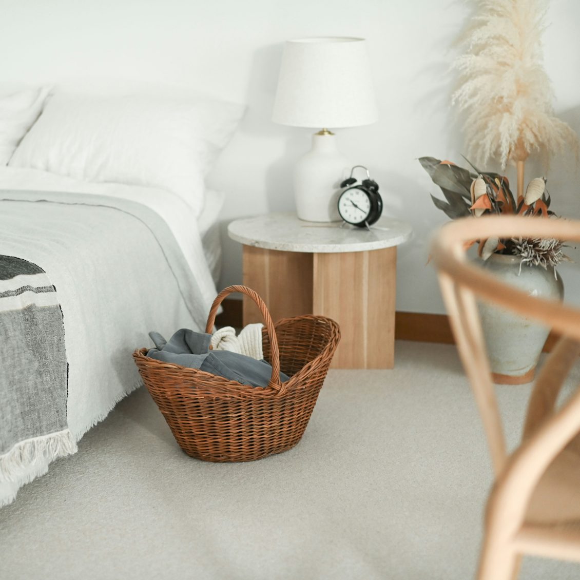ブランケットをざっくり入れたり、パジャマセットをぽいぽいっと入れたり。とにかくラフにお使いください。そんな様子も、かごなら絵になります。