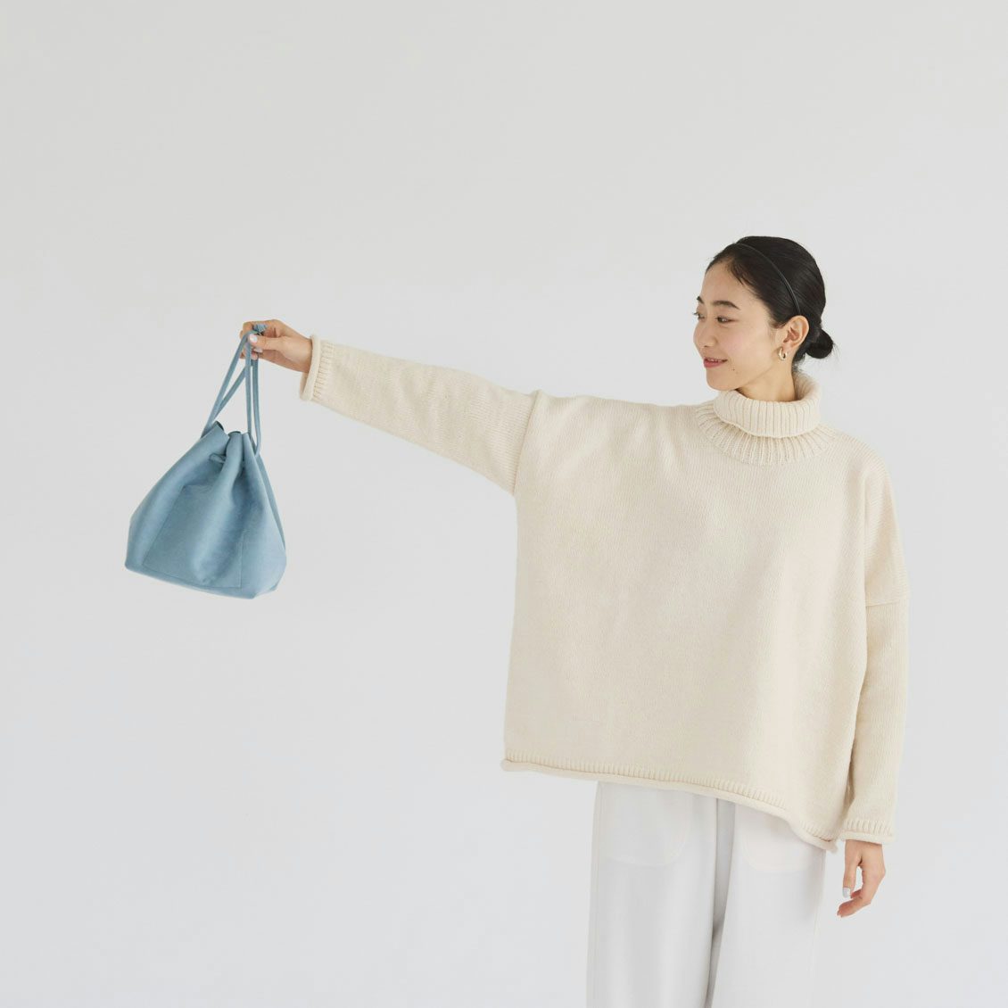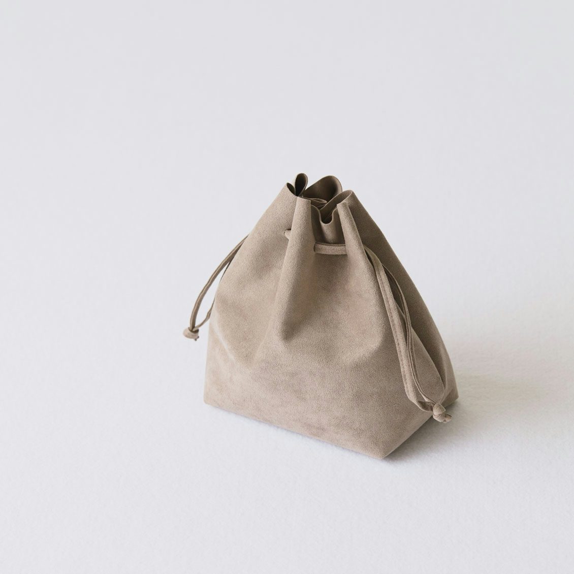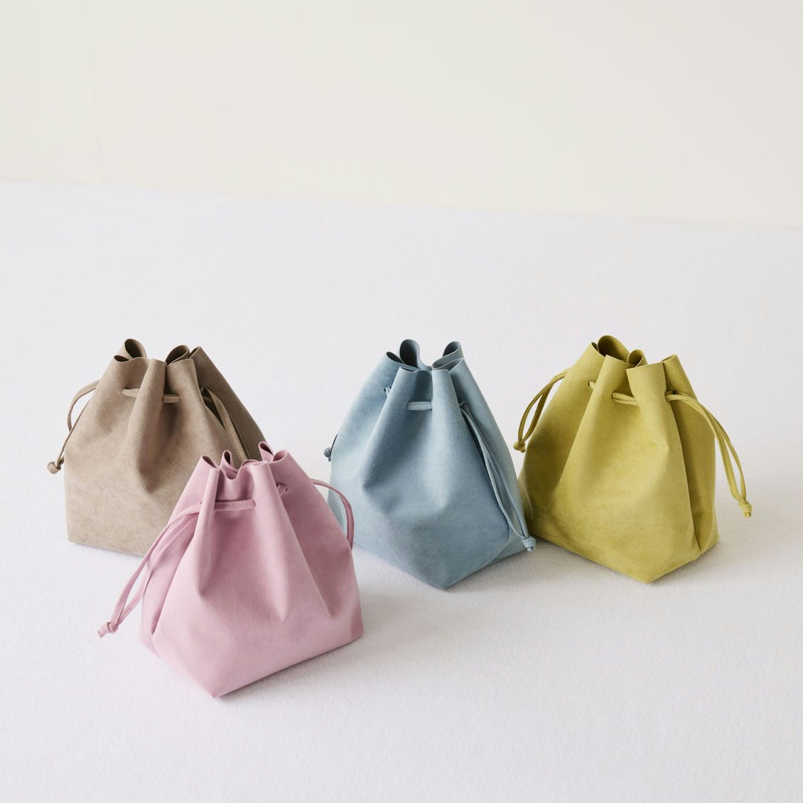 大人なスエードの風合いをもち、カラーバリエーションが可愛いミニ巾着バッグ。