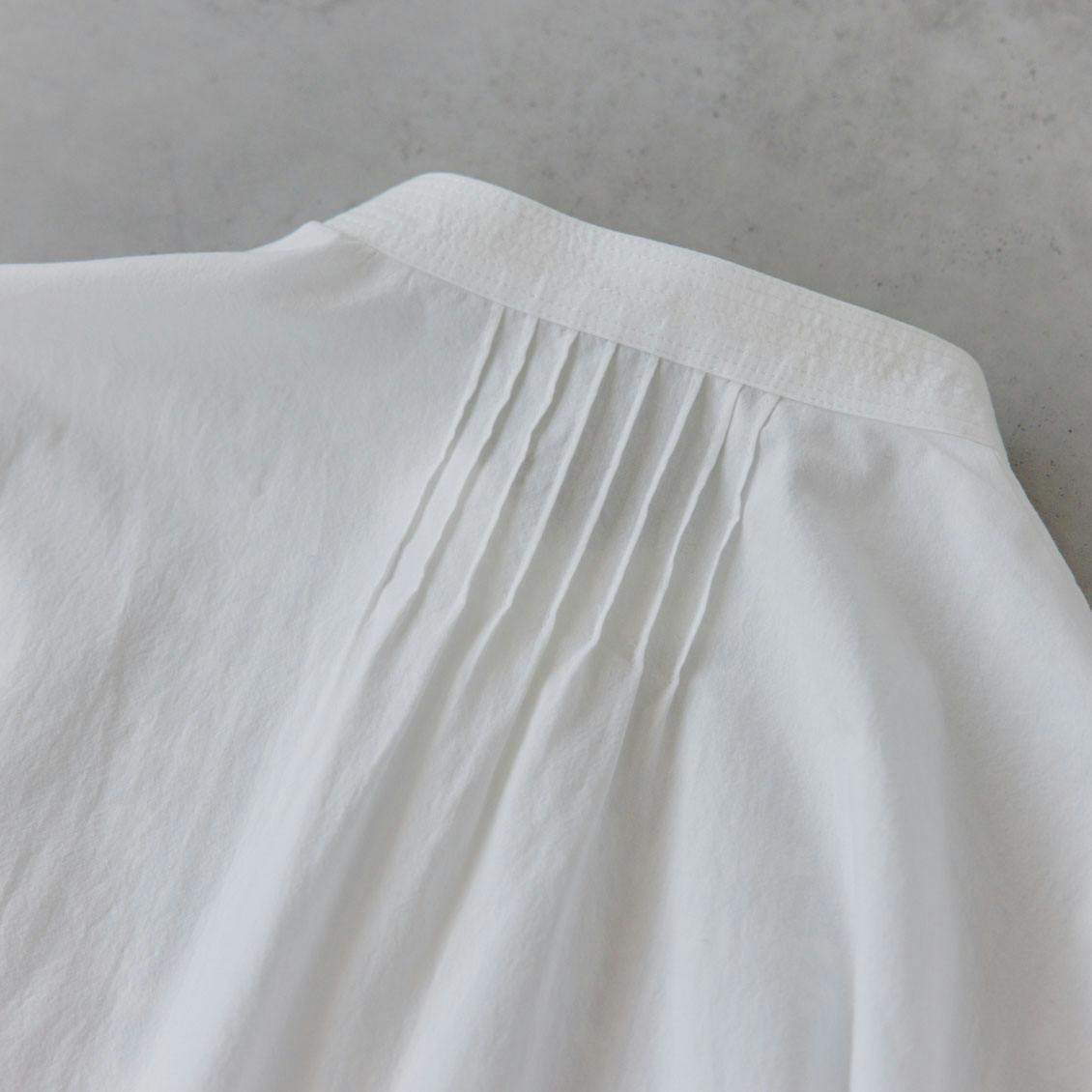 後ろ姿も、抜かりなく。襟元からピンタックを入れ、甘すぎず凛とした雰囲気に仕立てました。