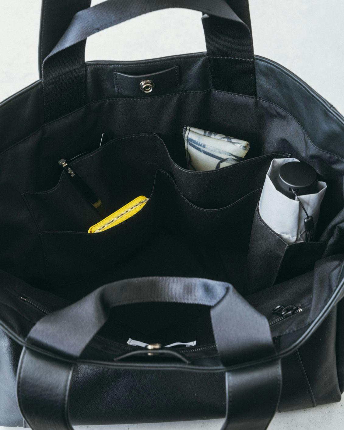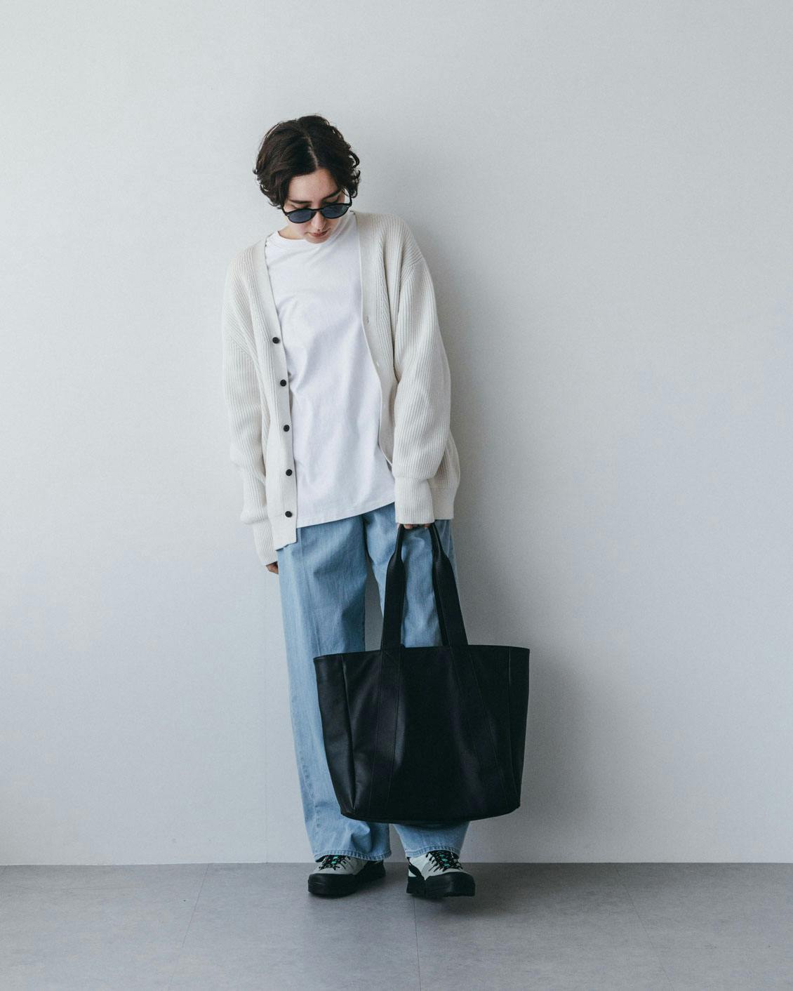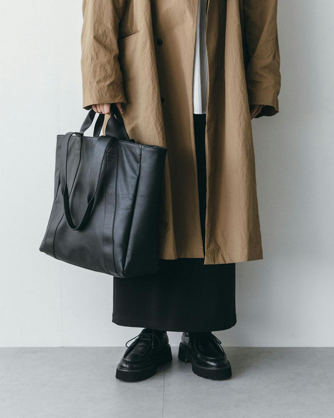レザーのトートバッグというと、多いのはビジネスシーン向けのもの。それがキャンバストートみたいにラフにも持てるデザインなら、きっと日常に馴染んで、オンにもオフにも使えるはず。